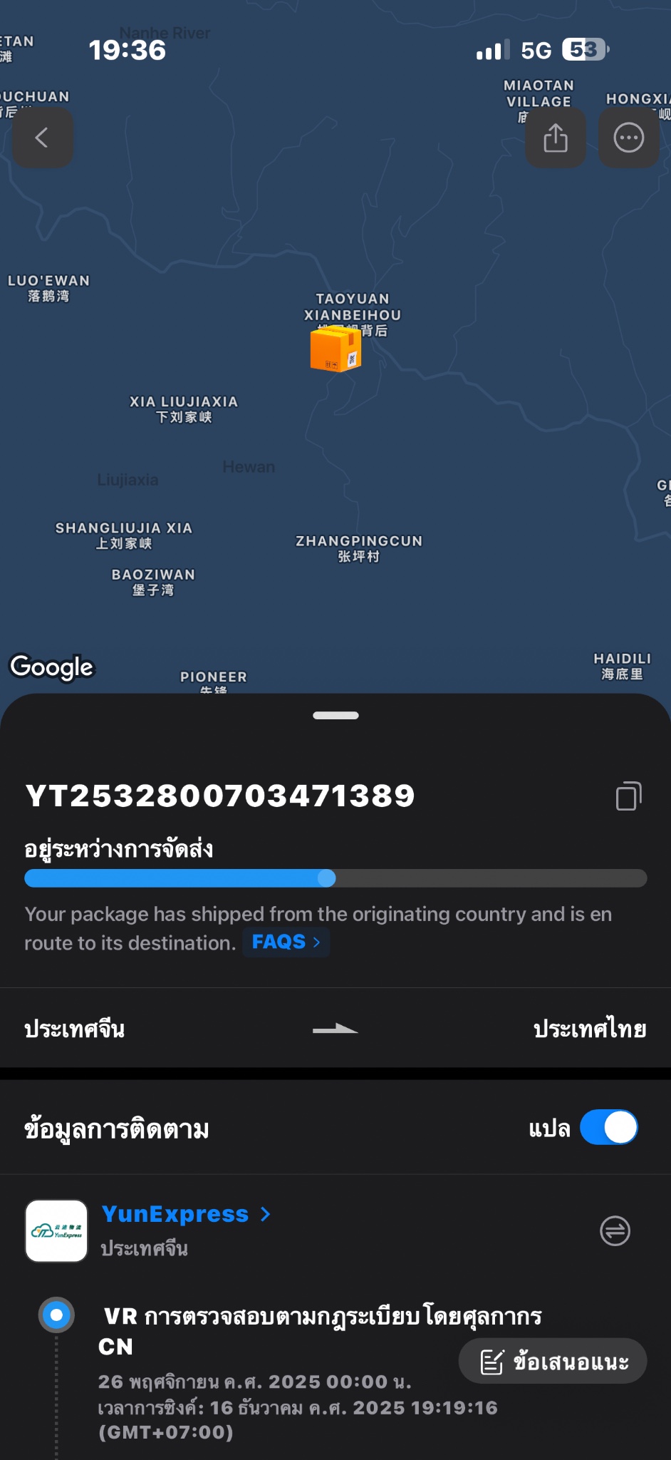 ขอสอบถามทีครับ ปกติไหมของสั่งจากจีน Yunexpress