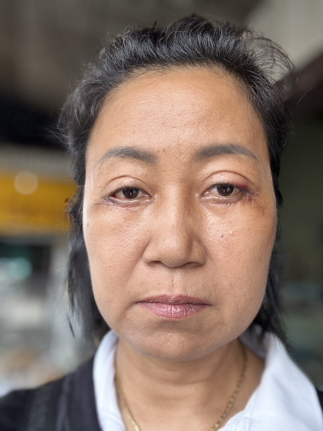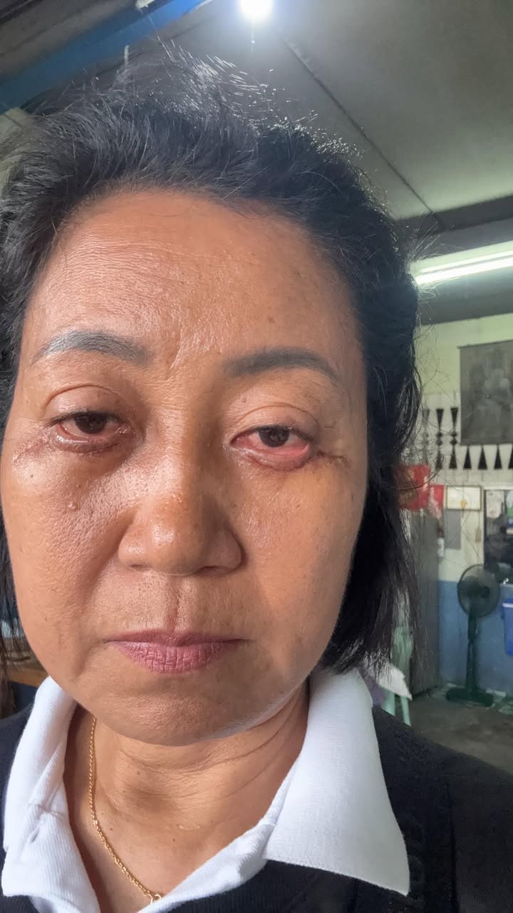 หลังจากการผ่าตัดแก้ไขภาวะ ตาแบะ เสร็จสิ้นเมื่อวันที่ 08/07/25 และผ่านพ้นคืนแรกมา ดิฉันได้ถ่ายภาพอัปเดตสภาพดวงตาหลังทำ 1 วันทันที เพื่อนๆ จะเห็นได้ว่ายังมีอาการบวมและรอยแดงบริเวณเปลือกตาชัดเจน ซึ่งเป็นเรื่องปกติของการผ่าตัดเปิดแผลที่มุมตาเพื่อแก้กระชับเอ็นตาล่างที่มีความละเอียดสูงค่ะ แม้จะยังมีอาการบวมอยู่ แต่สิ่งที่สังเกตเห็นได้ทันทีคือโครงสร้างของเปลือกตาล่างเริ่มกลับเข้าที่ ไม่แบะเหมือนตอนตัดถุงใต้ตา ซึ่งเป็นผลมาจากการทำงานที่เน้นความละเอียดและแก้ปัญหาได้อย่างแม่นยำของ คุณหมอวิ ในการดึงและกระชับเอ็นตาให้กลับมาดึงดังเดิม เพราะโครงสร้างปัญหาหลักได้รับการแก้ไขตั้งแต่ต้น นี่คือสัญญาณแรกของการกอบกู้ความมั่นใจกลับคืนมาค่ะ