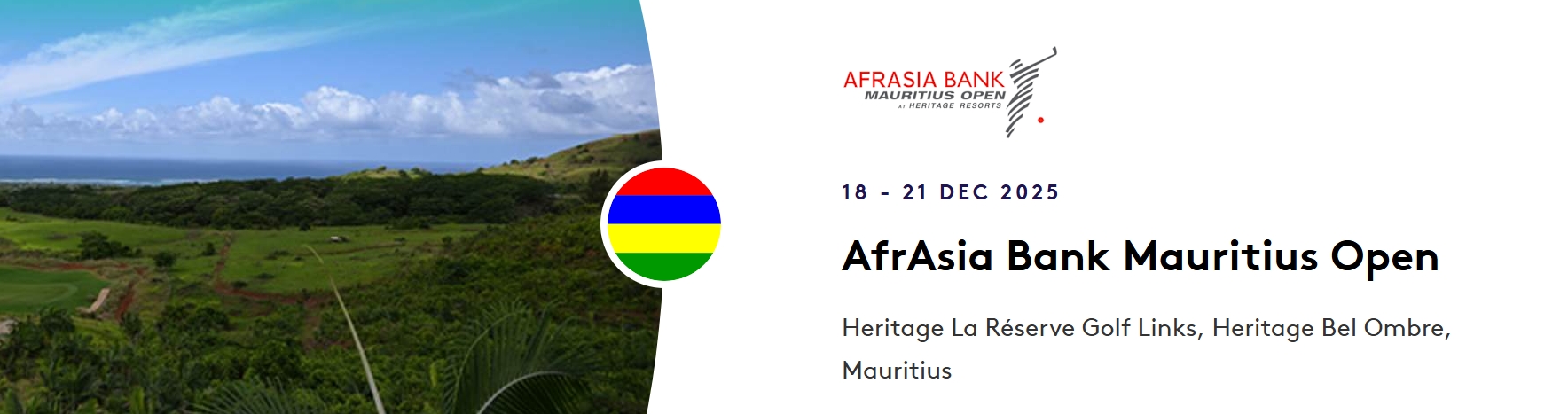 ขอเชิญแฟนกอล์ฟทุกท่านร่วมเชียร์และเป็นกำลังใจแก่นักกอล์ฟของเรา ในรายการ AfrAsia Bank Mauritius Open โดยการแข่งขันครั้งนี้จัดขึ้นที่ Heritage Golf Clu