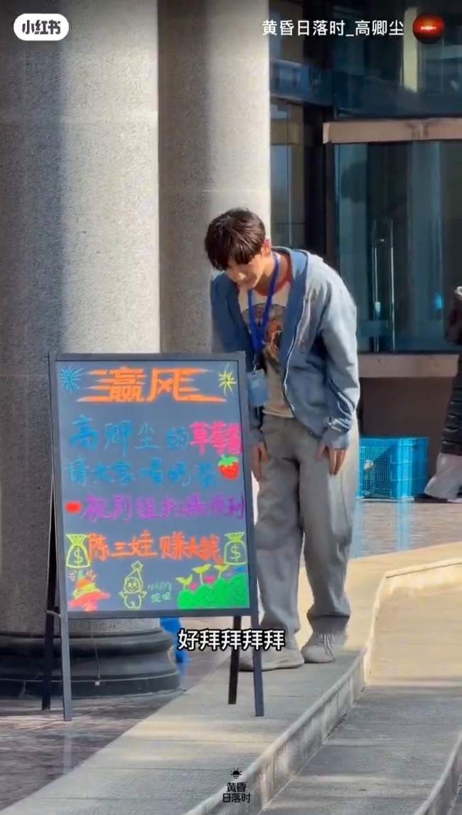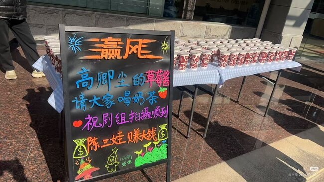 “กลุ่มแฟนคลับ 'แยมสตรอว์เบอร์รี่ของเกาชิงเฉิน' ได้ส่งความอบอุ่นและกำลังใจมาให้แล้ว! ขออวยพรให้การถ่ายทำซีรี่ส์เรื่อง 赢风 เป็นไปอย่างราบรื่นและประสบความสำเร็จ และเนื่องในโอกาสที่ 'เฉินซานหวา' ได้เข้าทำงานเป็นวันแรกนี้ ขออวยพรให้ได้รับทรัพย์สินเงินทองอย่างมากมายมหาศาลเลยนะคะ” 🍓💰
