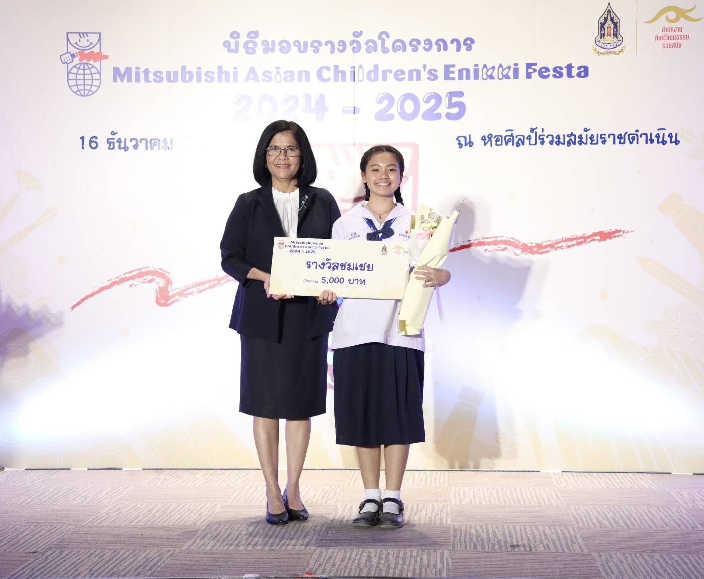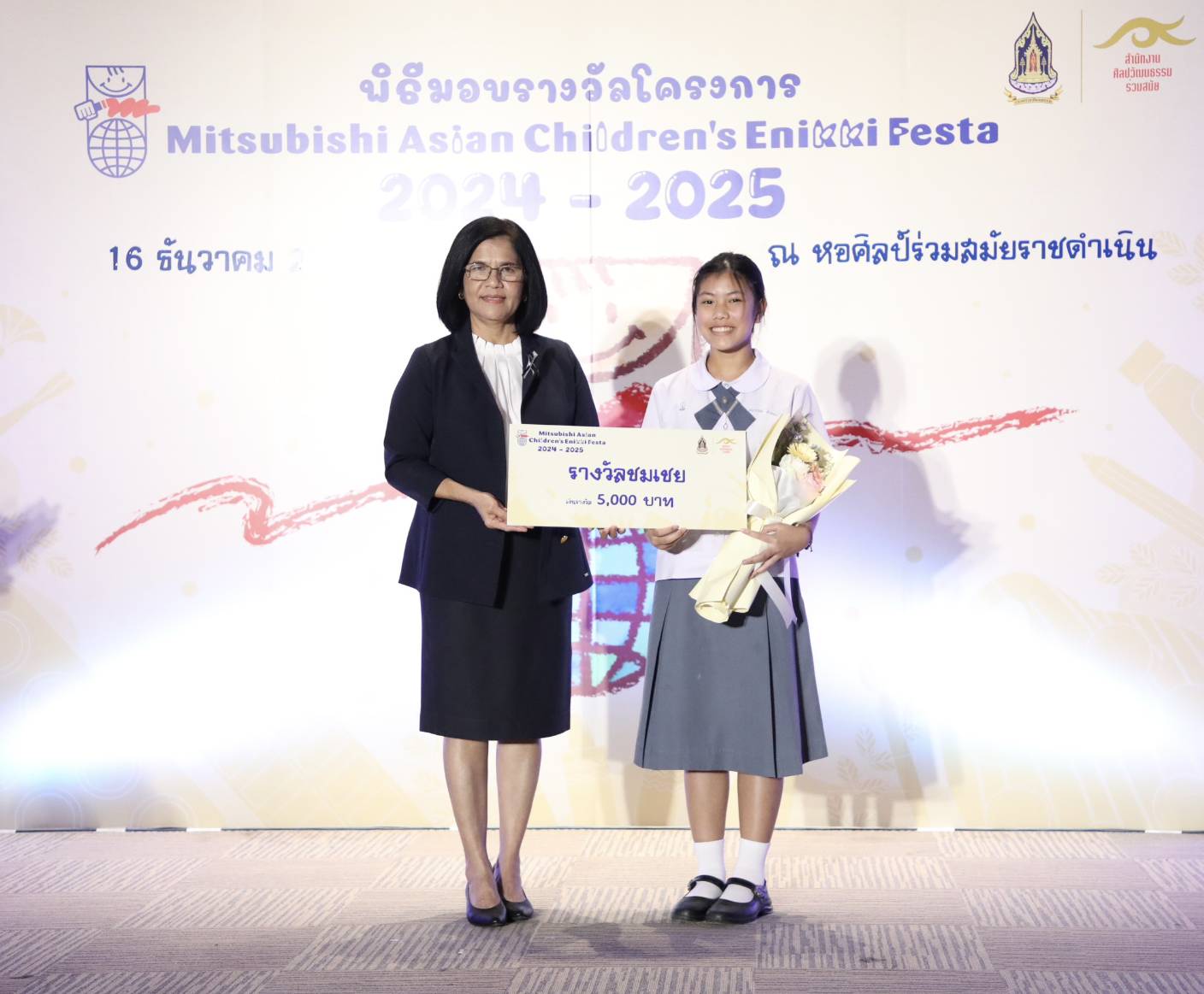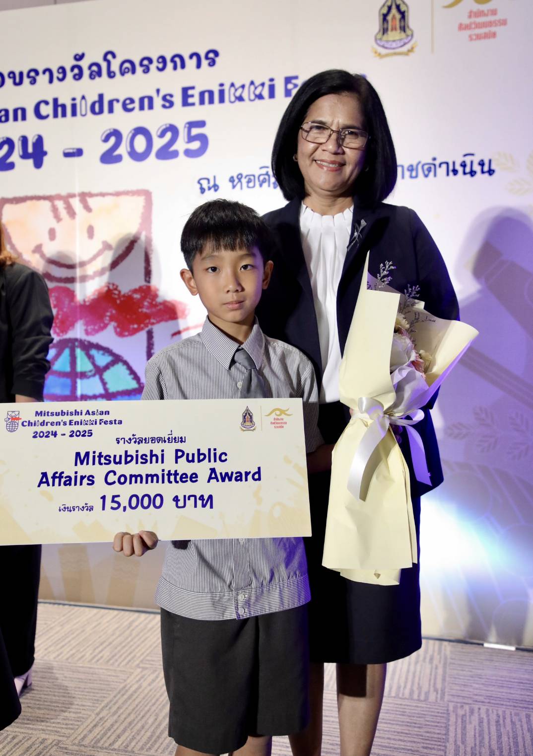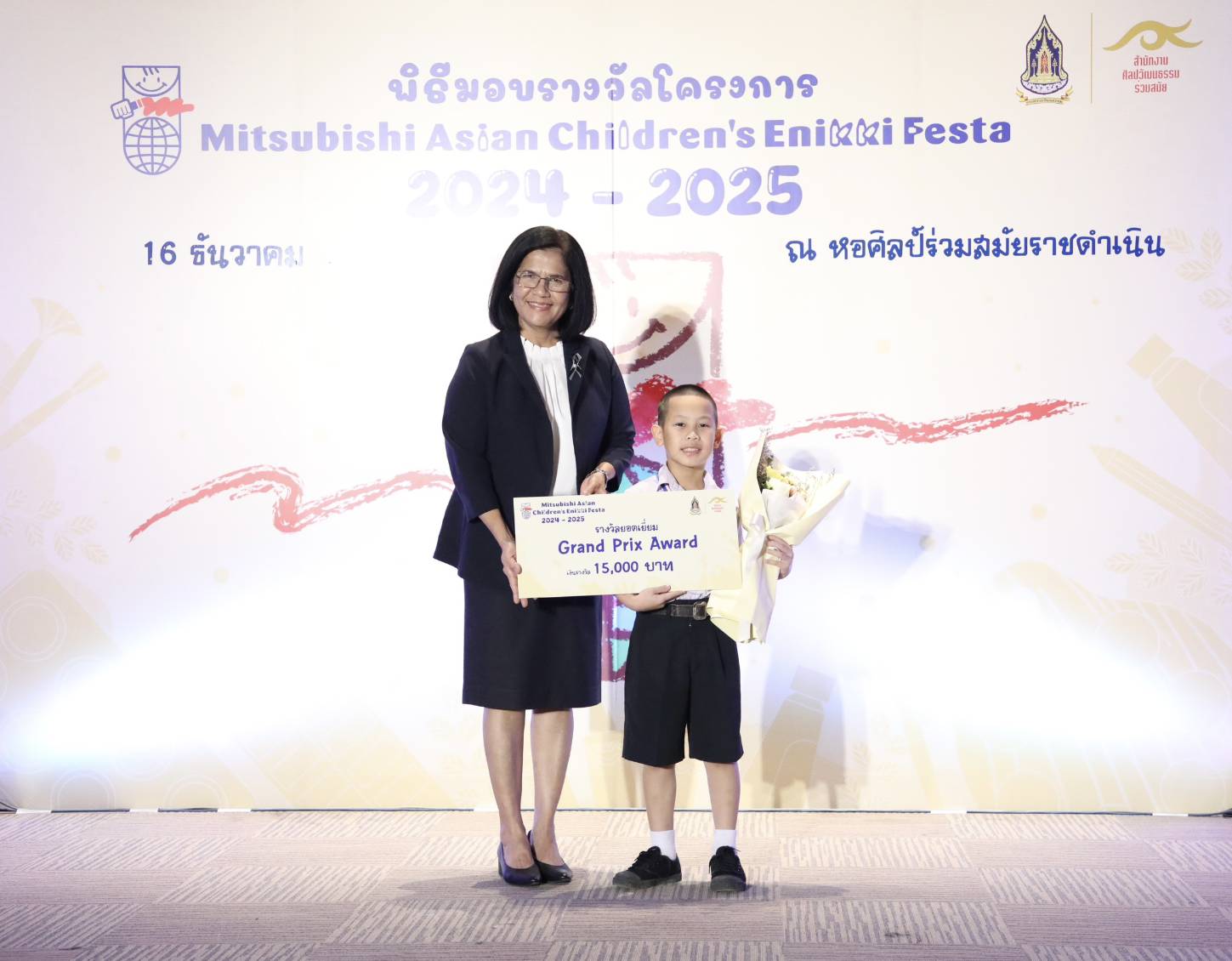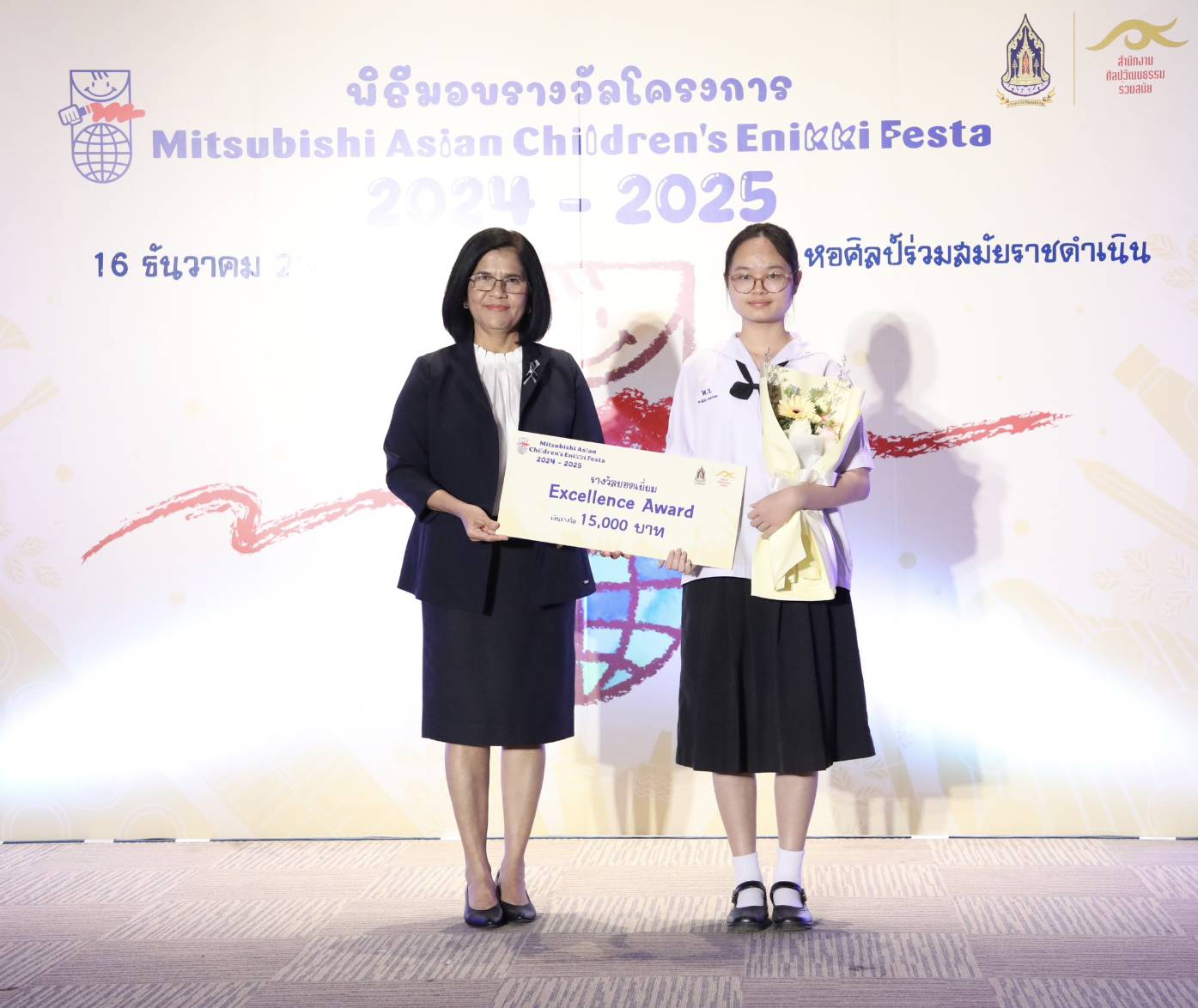 ทั้งนี้ สำนักงานศิลปวัฒนธรรมร่วมสมัย (สศร.) กระทรวงวัฒนธรรม (วธ.) จัด “โครงการ Mitsubishi Asian Children’s Enikki Festa 2024 – 2025” โดยได้รับการสนับสนุนงบประมาณดำเนินโครงการจาก National Federation of UNESCO Association in Japan (NFUAJ) เพื่อส่งเสริมให้เด็กอายุ 6-12 ปี ได้พัฒนาศักยภาพ สร้างสรรค์ผลงานศิลปะ ส่งเสริมความรักการอ่านและเขียน เผยแพร่ผลงานศิลปะและแลกเปลี่ยนเรียนรู้ศิลปวัฒนธรรมระหว่างประเทศ ซึ่งโครงการฯ ได้เปิดรับผลงานศิลปะจากเด็กที่มีอายุระหว่าง 6 -12 ปี จากทั่วประเทศ ในหัวข้อ “ชีวิตของฉันที่อยากจะแบ่งปันกับทุกคนในเอเชีย” โดยมีเด็กส่งผลงานเข้าร่วมโครงการฯ ทั้งหมด 693 คน จำนวน 2,079 ผลงาน ซึ่งคณะกรรมการคัดเลือกและตัดสินผลงานได้ตัดสินผลงานยอดเยี่ยมระดับประเทศ 8 รางวัล และรางวัลชมเชยระดับประเทศอีก 10 รางวัล รวมทั้งสิ้น 18 รางวัล