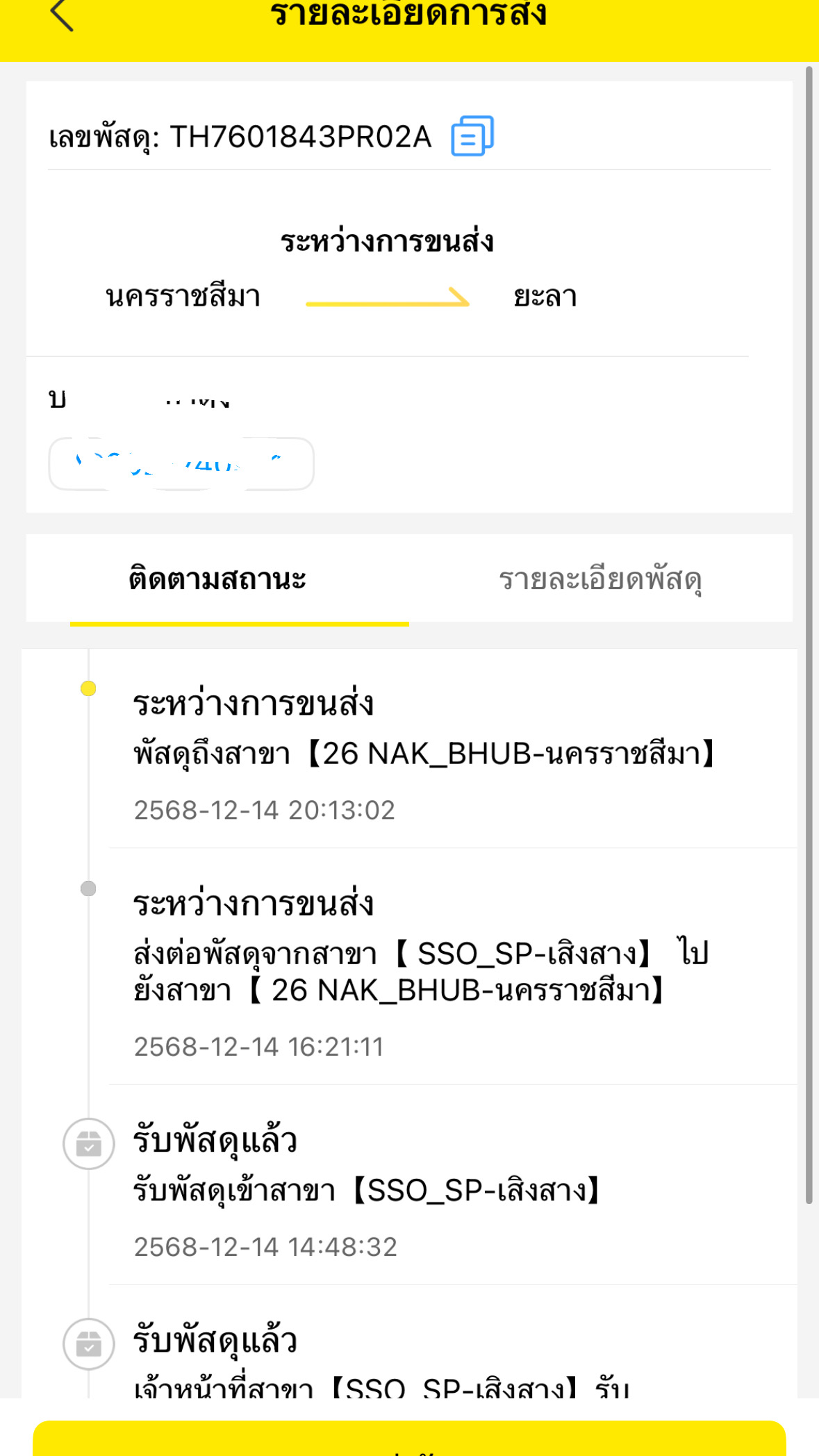 พัสดุค้าง Hub สุราษฎร์ธานี จะ 1 วันเต็มแล้ว ไม่ขยับเลย