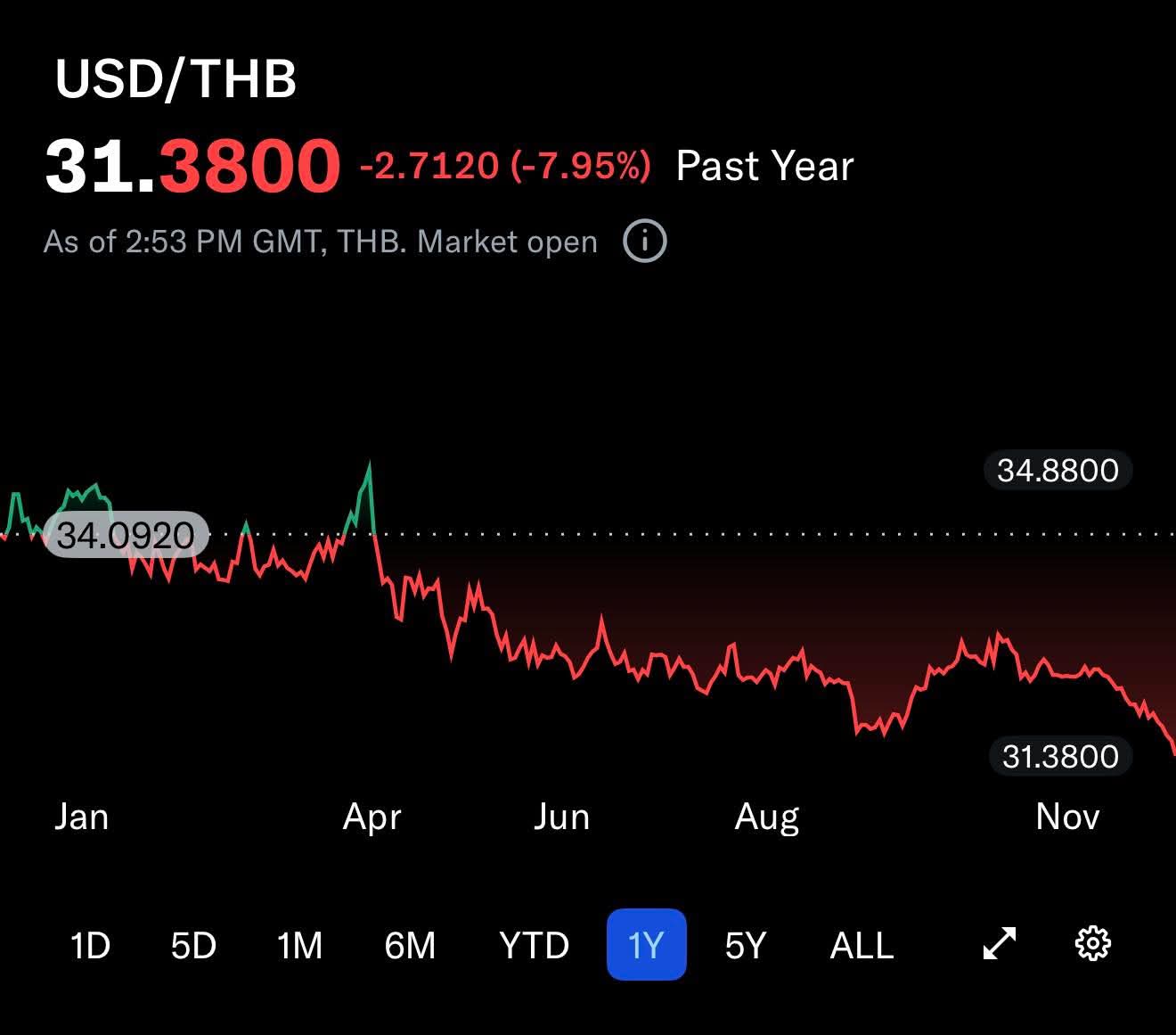 โดยนับจากต้นปี เงินบาท แข็งค่าขึ้นกว่า 8% เมื่อเทียบกับดอลลาร์สหรัฐ