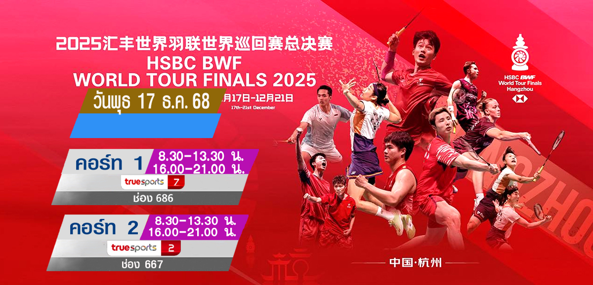เชียร์สด ! แบดมินตัน HSBC BWF World Tour Finals 2025 : รอบแบ่งกลุ่ม Day 1 (17 ธ.ค. 67) (คู่แรกเวลา 8.30 น.)