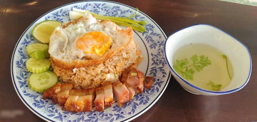 ข้าวผัดหมูกรอบ+ไข่ดาว 🐷🍖🥒