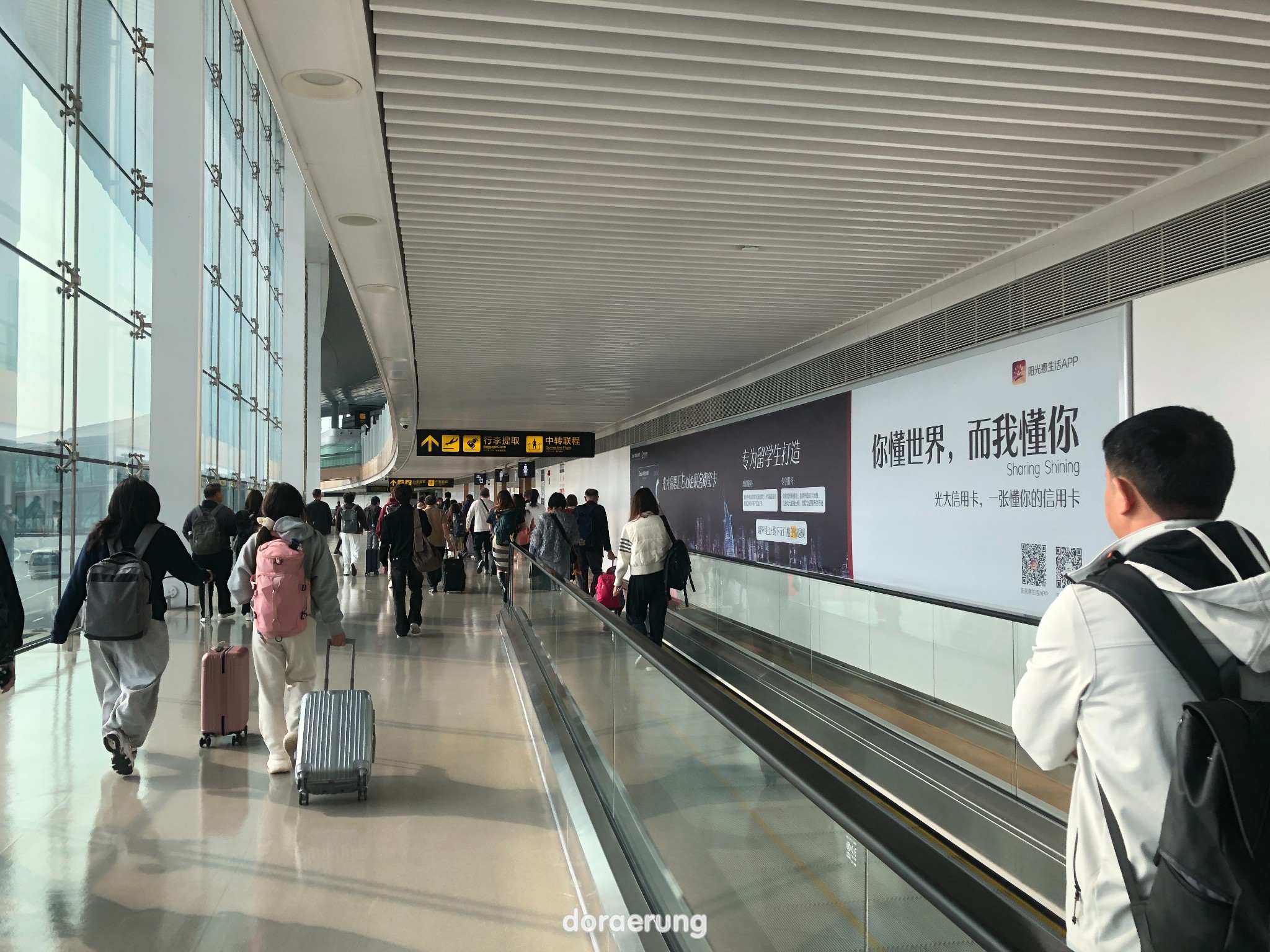 เดินตามคนข้างหน้าไปเลยจ้า โอ๊ะ ลืมบอกอีกอย่าง ตอนนี้เข้าจีน สามารถกรอบ "ใบเข้าเมืองออนไลน์" แบบไม่ต้องมาปริ้นท์ที่เครื่องได้แล้วนะ (หาลิงก์ตามเว็บเอาเด้อ) ทำล่วงหน้าก่อนเดินทาง 3 วันค่ะ ส่วนใครถนัดเขียนกระดาษ หรือจะมาปริ้นท์ที่เครื่อง ก็ยังทำได้เหมือนเดิม สรุปคือ มี 3 แบบให้เลือกตามอัธยาศัยค่ะ ^_^