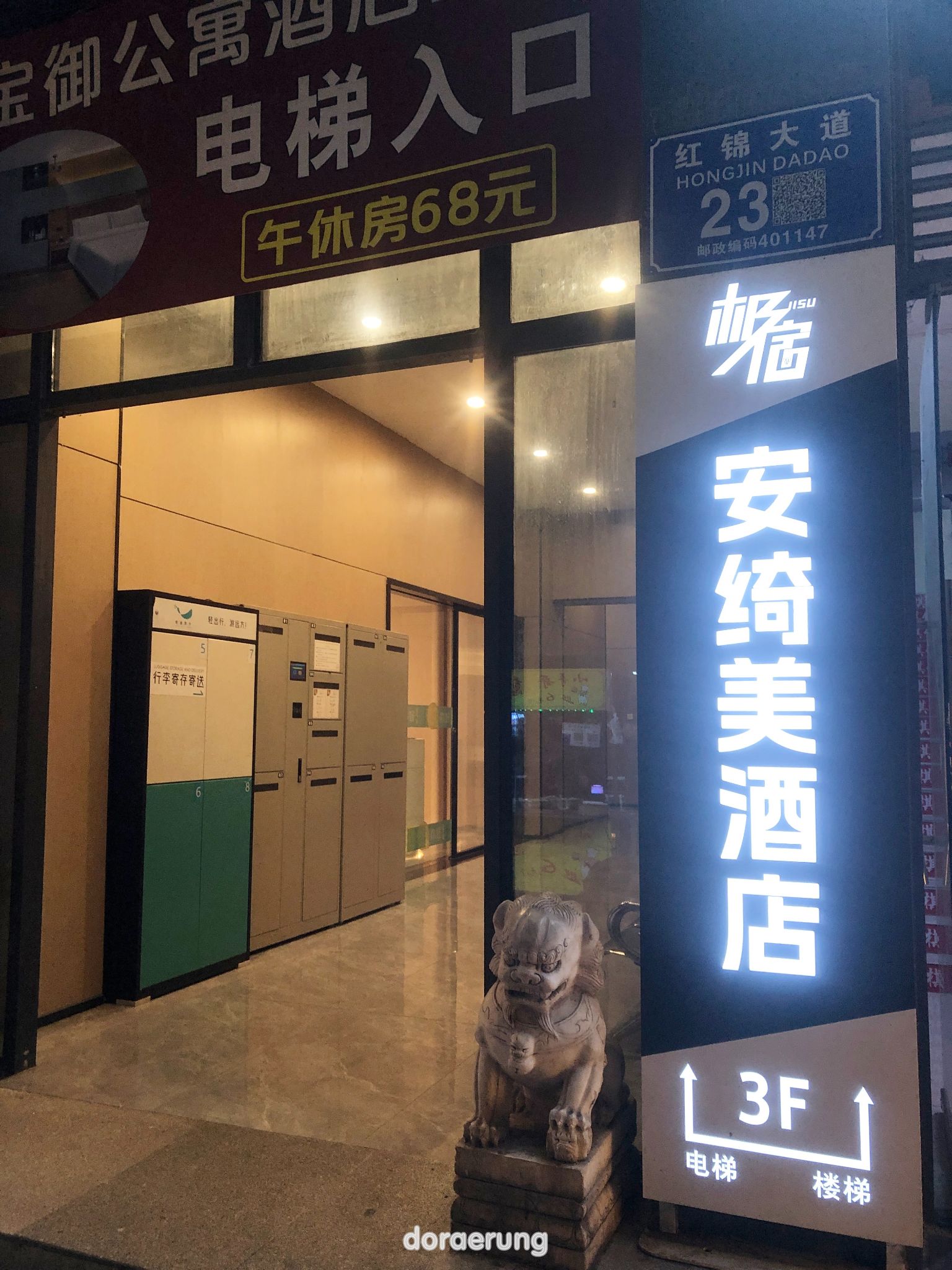 รุ้งพักที่ Anqimei Hotel แถวสถานี Hongqihegou ค่ะ นั่งสายสีม่วงยาวไปค่ะ แล้วค่อยไปต่อสายสีชมพูอีก 2 สถานีก็ถึง ตอนที่รถไฟพ้นอุโมงค์ โอ้โห หมอกจัด หมอกเยอะมาก มองไม่เห็นอะไรเลย ตื่นตาตื่นใจมากจริง รางรถไฟอยู่สูงจากพื้นแบบสูงม้ากกกกกกกก สวยด้วย เสียวด้วยค่ะ