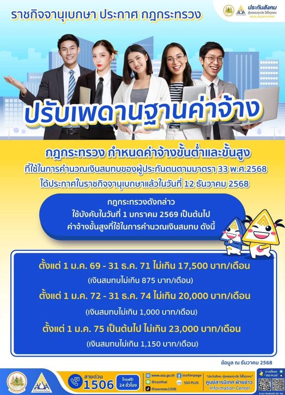 ปรับแล้ว ค่าประกันสังคม เริ่มมีผลบังคับใช้ สำหรับเงินเดือนงวดมกราคม 2569