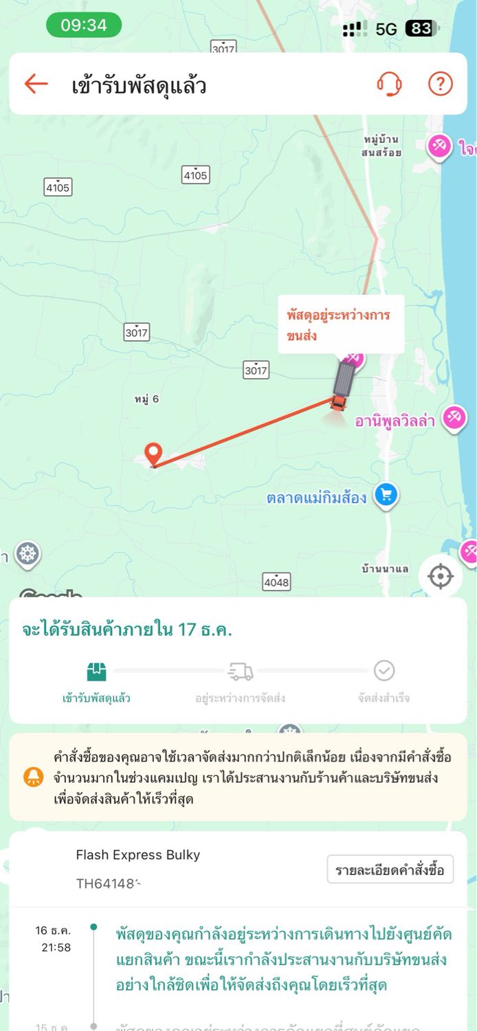 คือผมสั่ง ของออนไลน์ จาก Shopee และส่งผ่าน Flash ซึ่งจริงๆวันรับของของผมควรจะเป็น วันที่ 15 แต่วันนี้วันที่ 17 แล้วของยังไม่มาเลย แล้วตอนแรกขึ้นส่งไปสาขาปลายทางแล้ว สักพักขึ้นอยู่ระหว่าง ส่งสถานีคัดแยกอีก ผมเลยงงว่ามันจะส่งซ้ำซ้อนทำไม ทำไมไม่ส่งมาที่สาขาผมเลย แล้วติดต่อสาขาก็ไม่ได้ เบอร์ติดต่อสำนักงานก็โทรไม่ติด ผมสามารถทำยังไงได้บ้างครับ ขอบคุณล่วงหน้าครับ