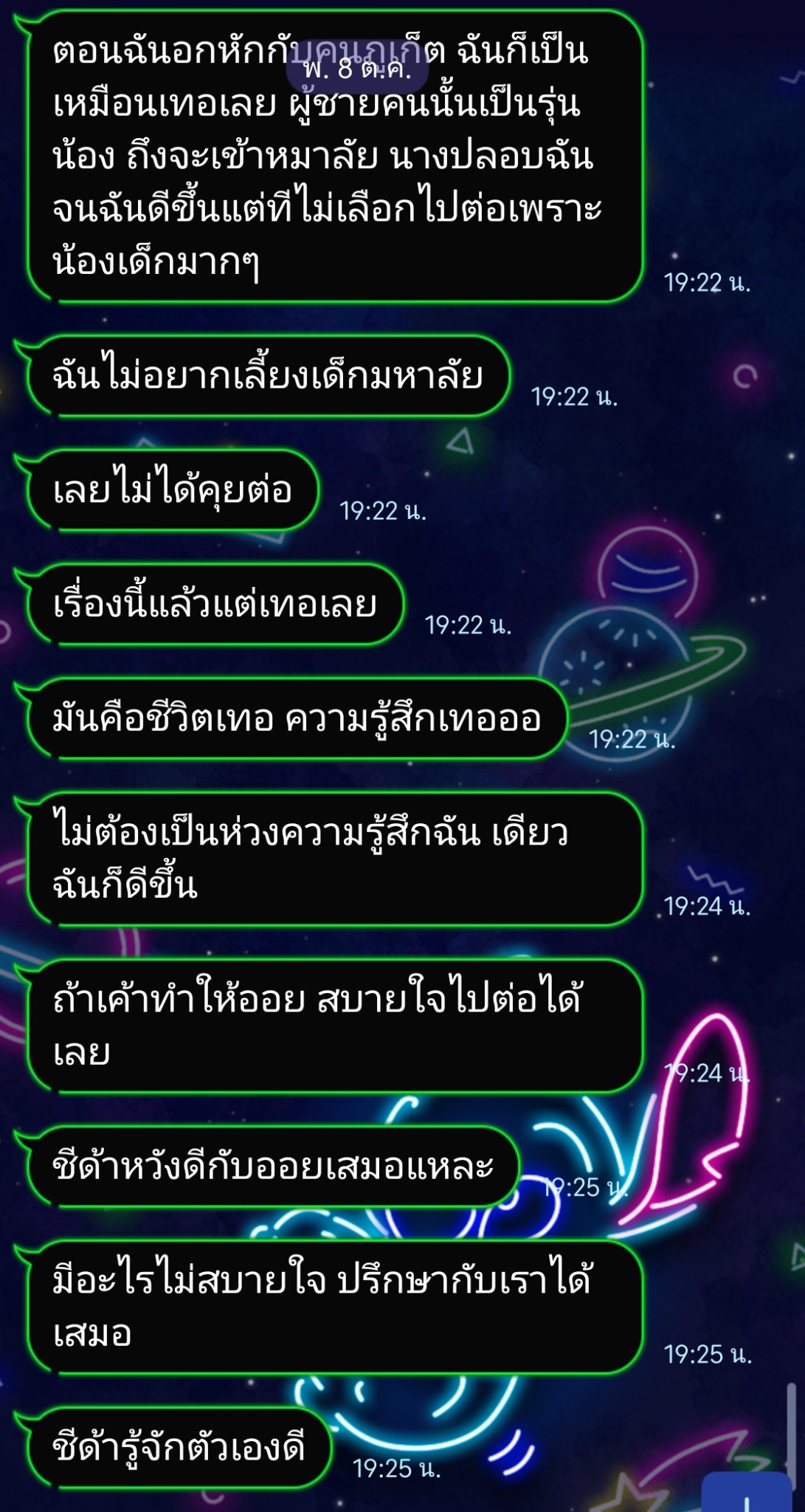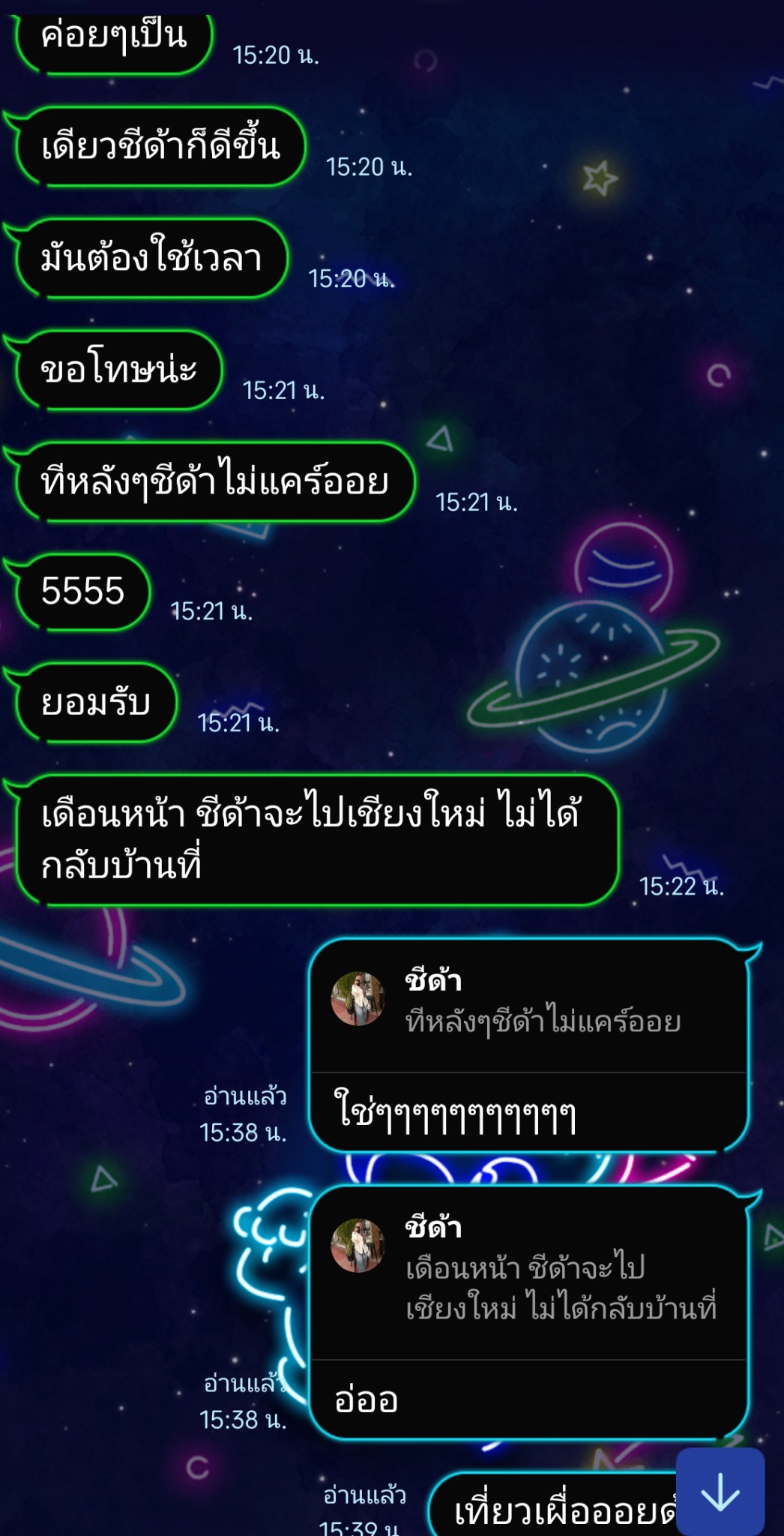 ***ขอบอก ณ. ช่วงที่ได้ช่องทางติดต่อน้องเขามาผมก็ไม่ได้ทุกไปคุยอะไรเลย เต็มที่ก็ชวนเล่นเกมROV จนปี68 เดือน สิงหาคม น้องเขาเปิดตัวแฟน ผมเห็นน้องมันลงสตอรี่ ซึ่งผมก็เอ่อ ยินดีนะที่น้องมีแฟน***