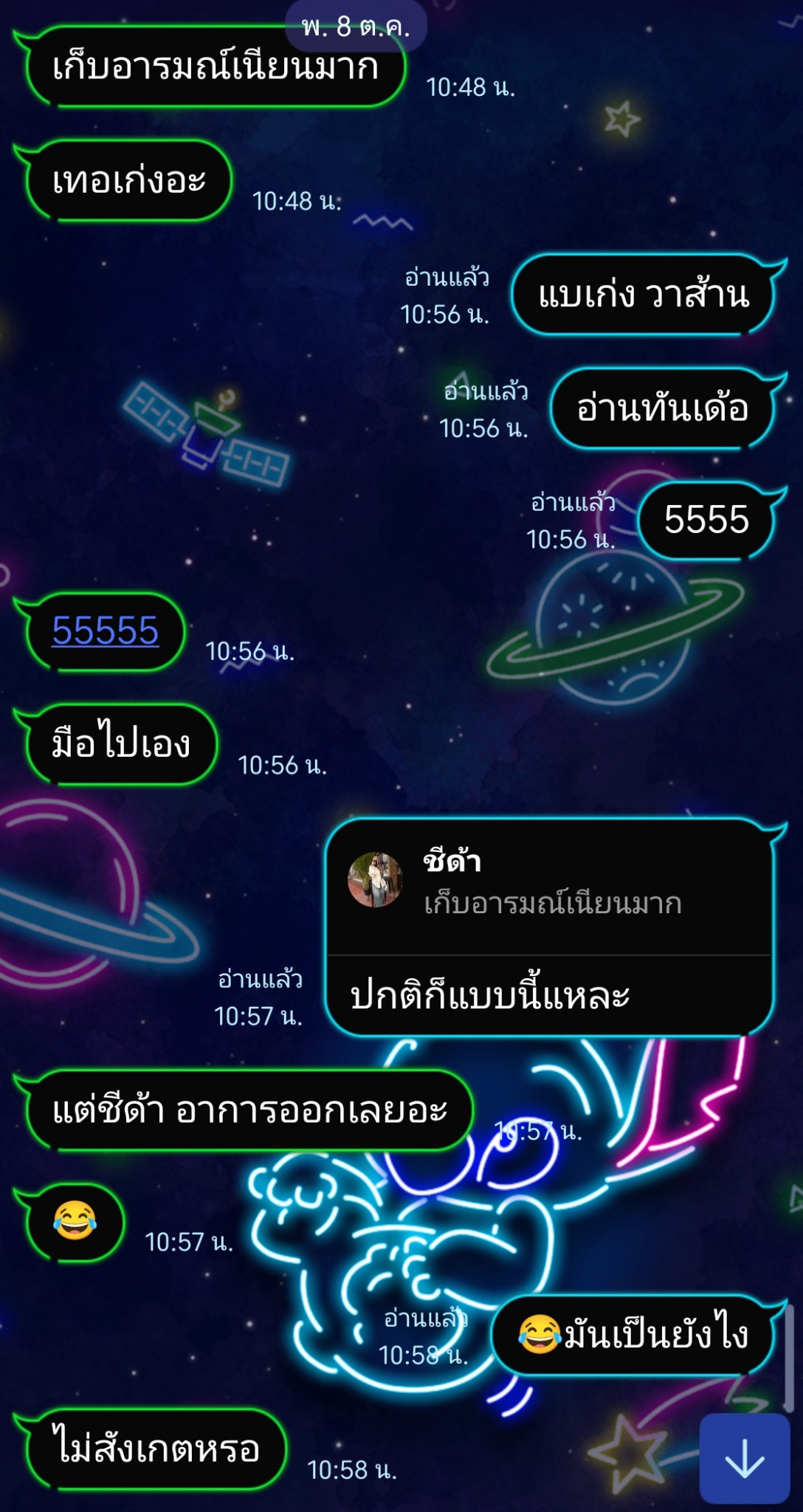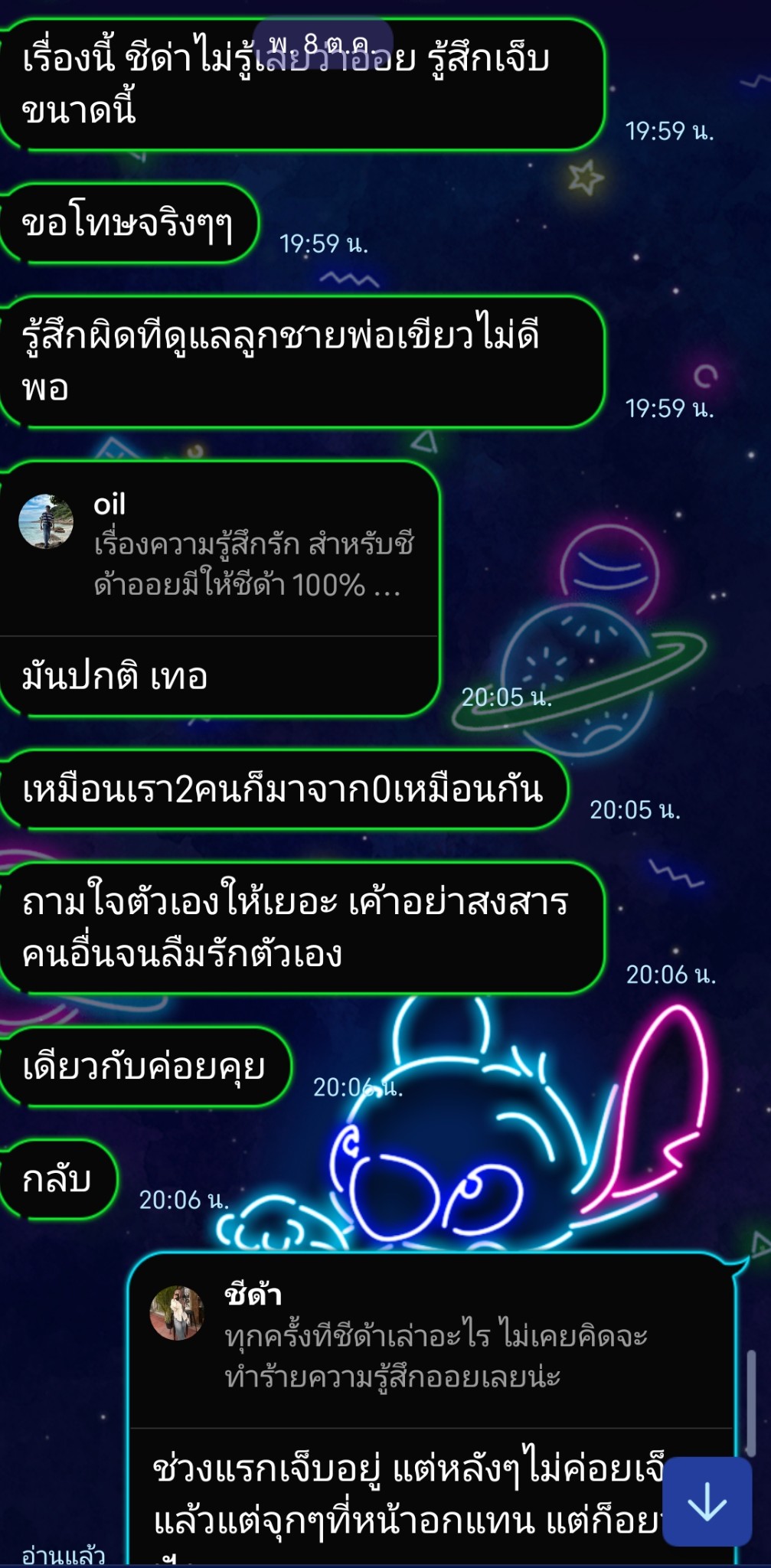 เดี๋ยวเอาภาพแชทแฟนผมให้ดุถ้าอ่านจากEPก่อนจะรุ้สึกว่าแฟนผมไม่ค่อยจะถนอมใจผมซักเท่าไหร่ ทำเป็นผมเหมือนของที่เก็บไว้จะใช้ตอนไหนก็หยิบออกมา ใช้เสร็จเก็บไว้ต่อ ไม่ทิ้ง เก็บเฉยๆ (อันนี้ความรู้สึกผมนะ)