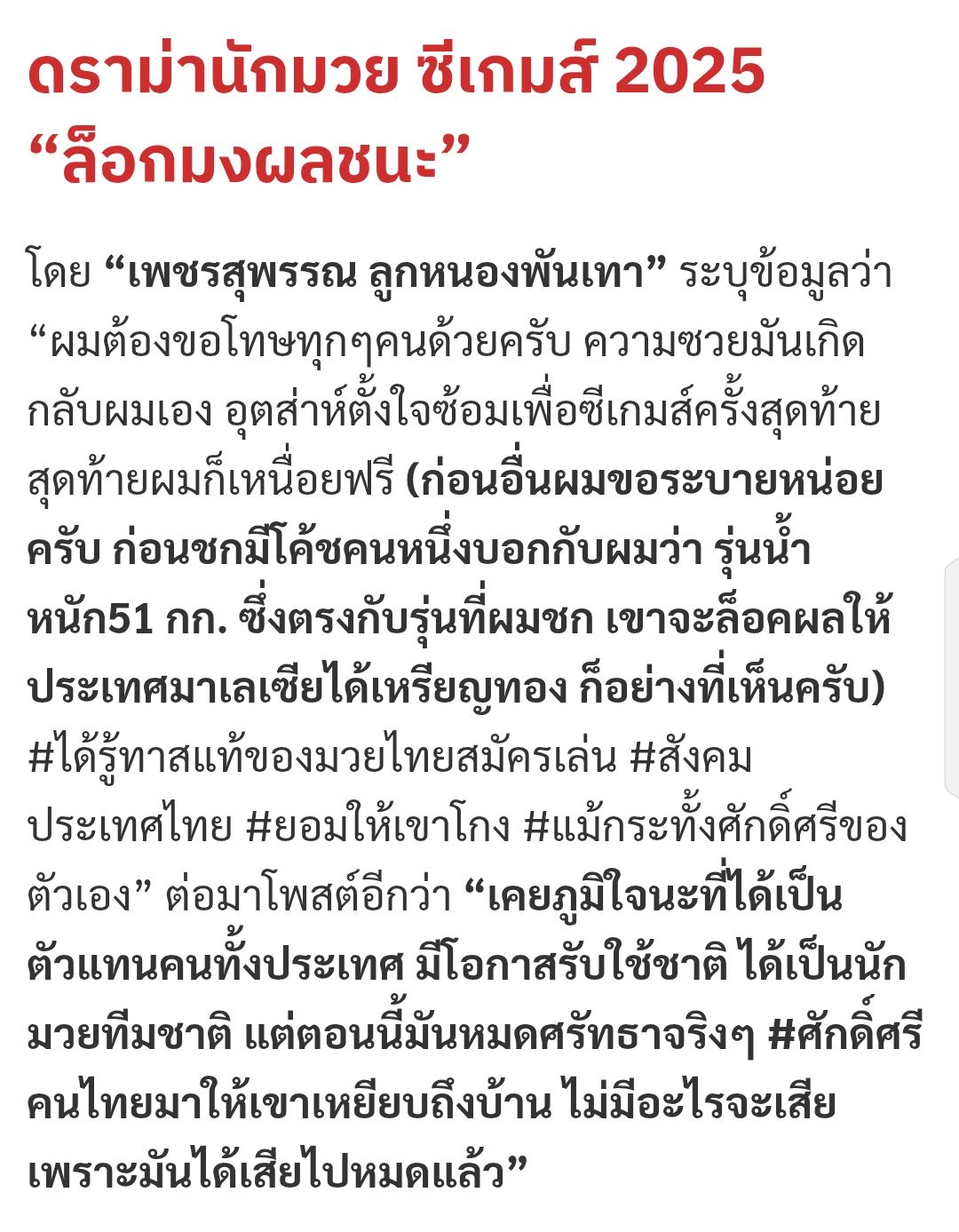 😲 อีกแล้ว ดราม่านักมวย ซีเกมส์ 2025 รุ่น 51 กก. มีการล็อกมงชนะ “เหรียญทอง”