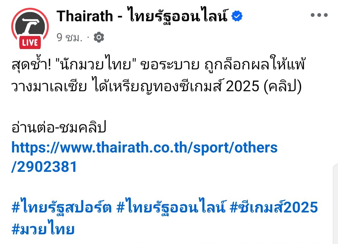 เชียร์ไทย ในซีเกมส์ THAILAND 2025...17/12/68.....ถ่ายทอดเช้า NBT+PPTV+Tsport7 บ่าย ไทยรัฐ+ช่องวัน