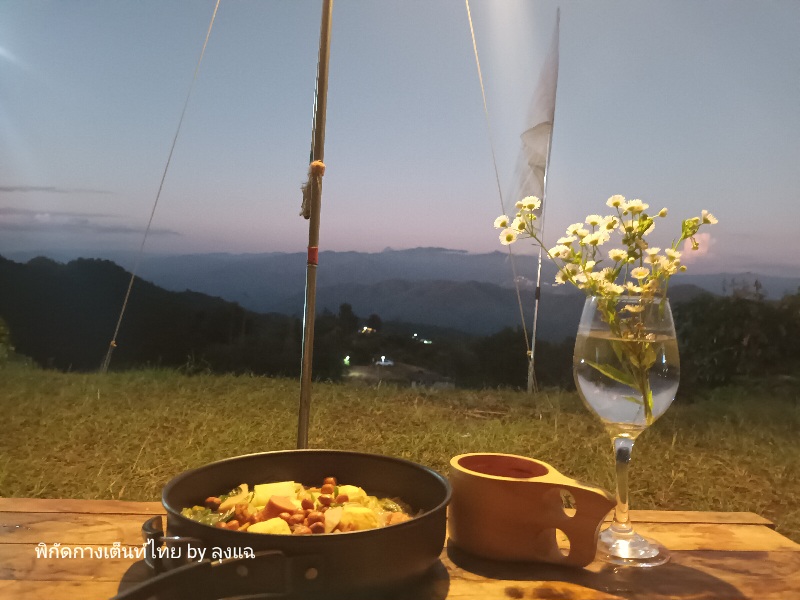 กลับมาอุ่นมื้อเย็นรองท้อง ฟ้าเริ่มมืด ขุนเขาดูละมุนมากๆ ออกมาเก็บภาพประทับใจไว้ นั่งกินด้วยความอร่อย อิ่มท้อง อิ่มใจครับ