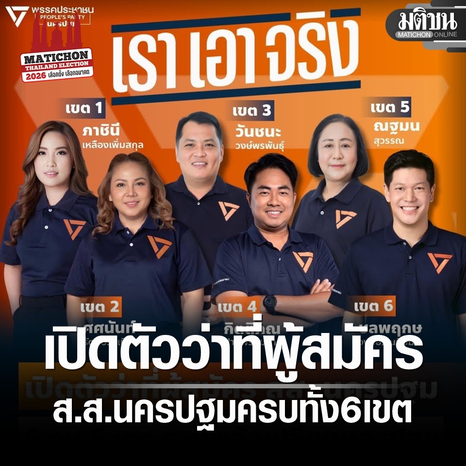 พรรคประชาชน เปิดตัวว่าที่ผู้สมัคร ส.ส.นครปฐม ครบแล้ว 6 เขต