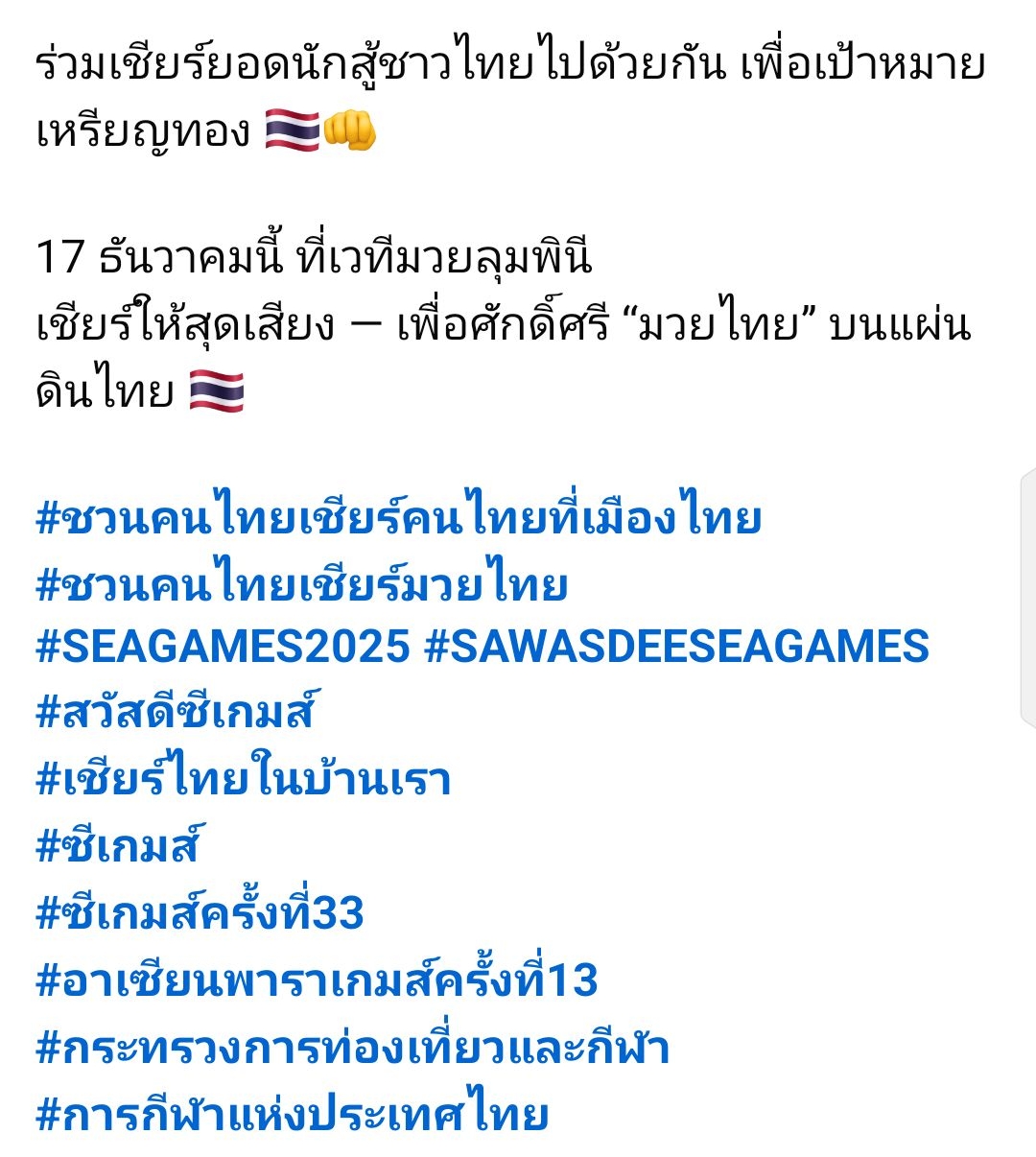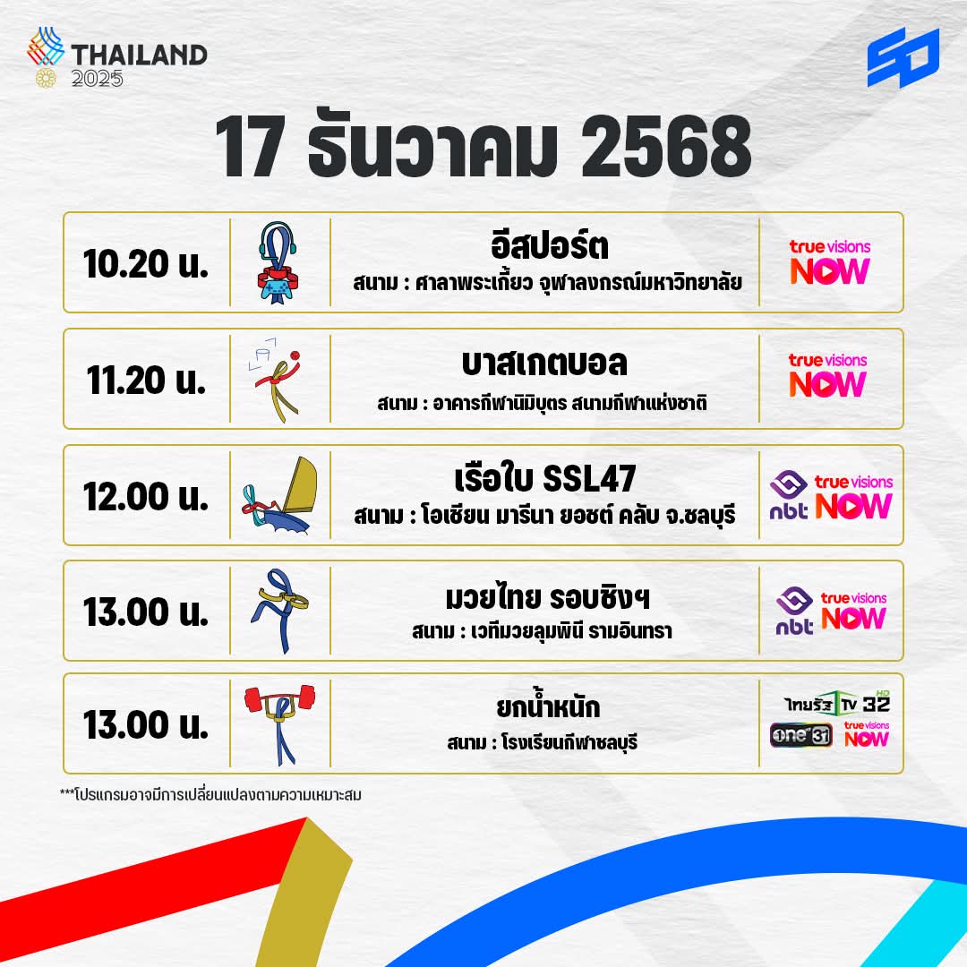 เชียร์ไทย ในซีเกมส์ THAILAND 2025...16/12/68.....ถ่ายทอดเช้า NBT+Tsport+PPTV+ช่องวัน