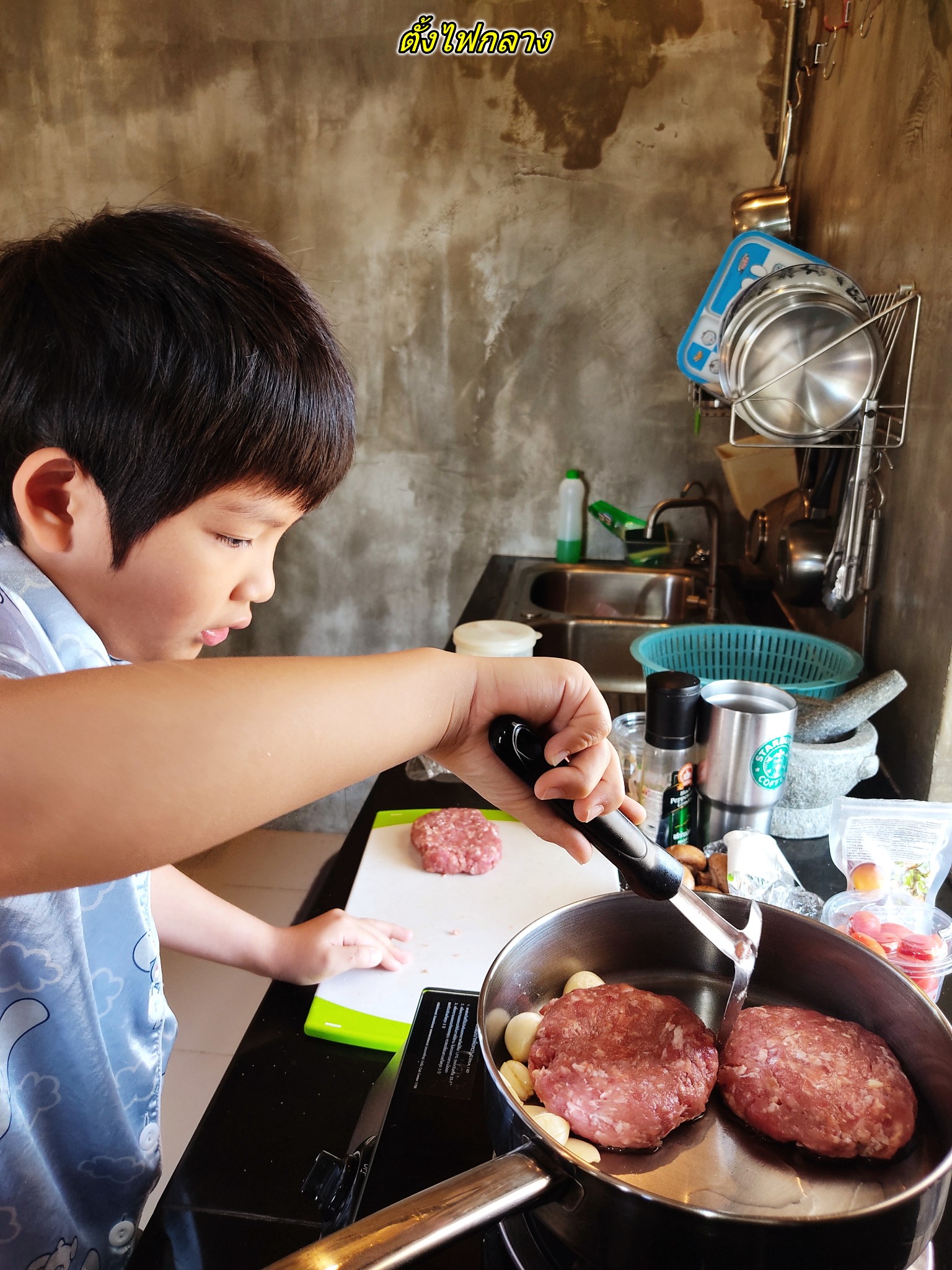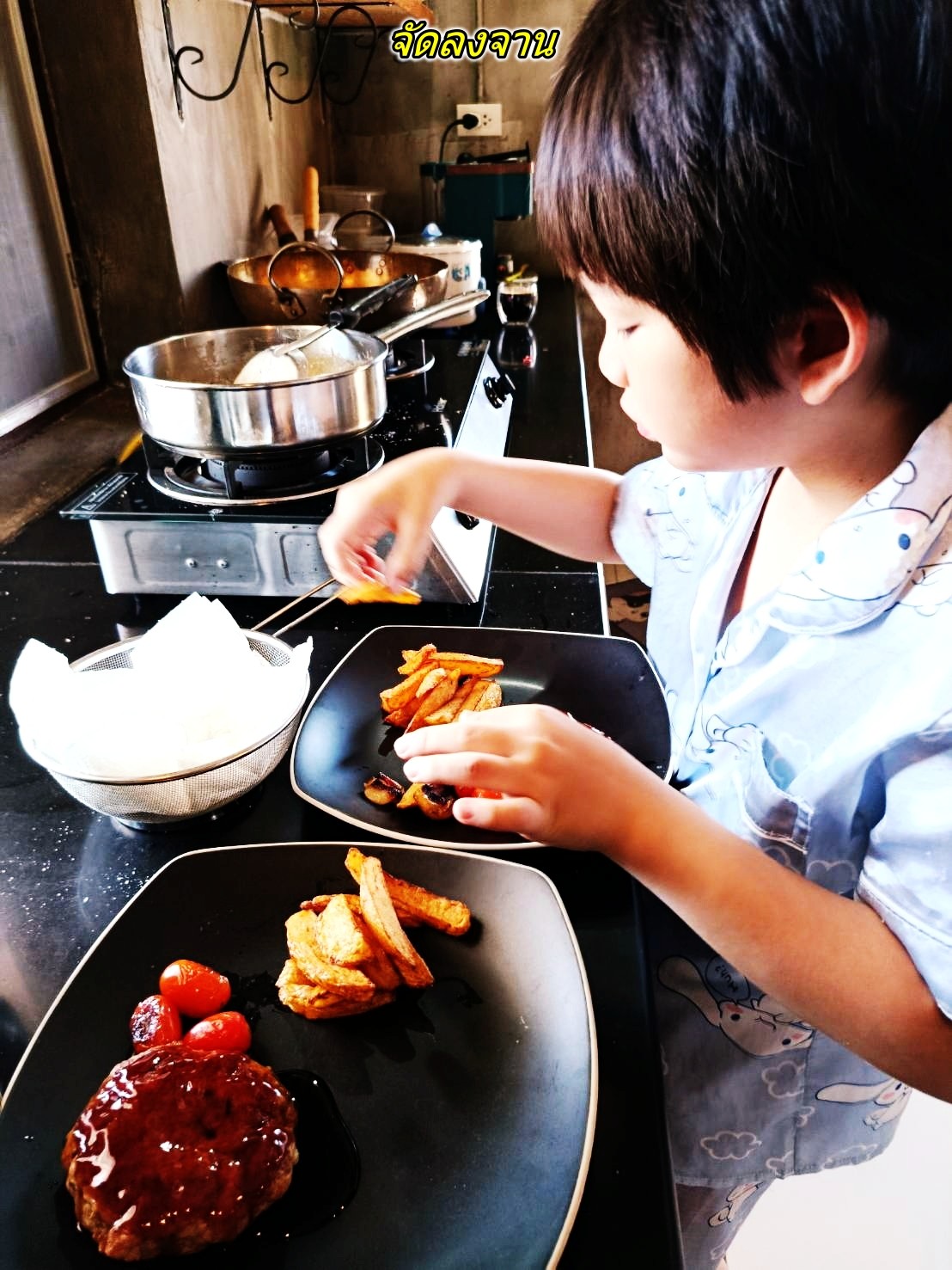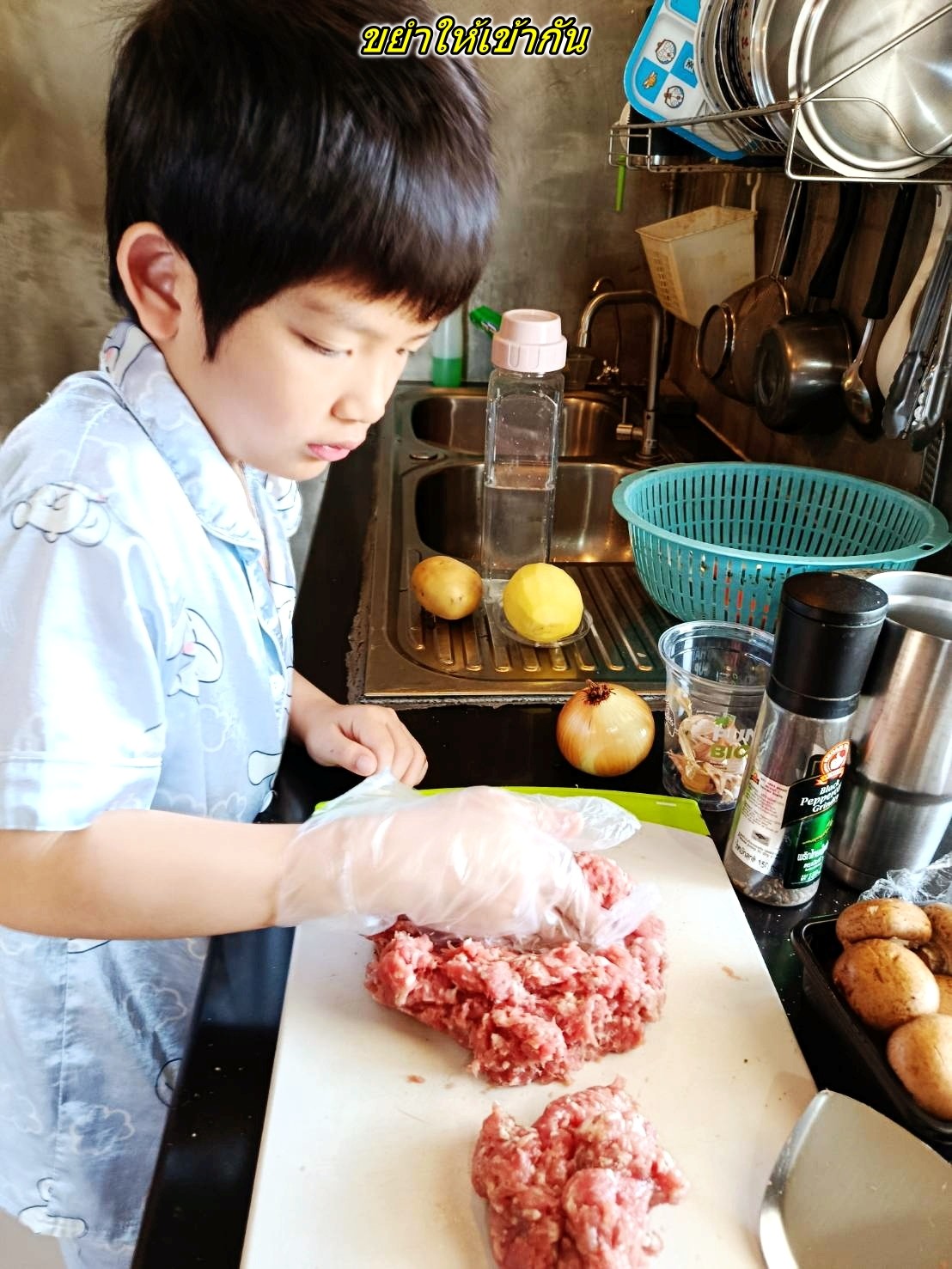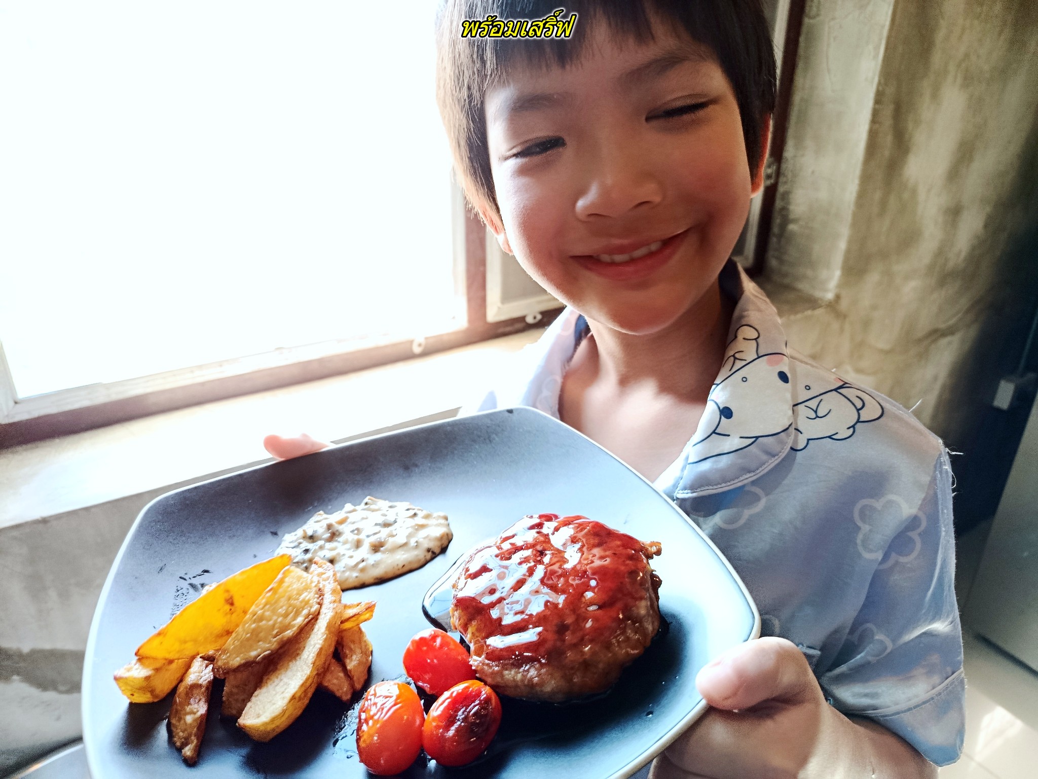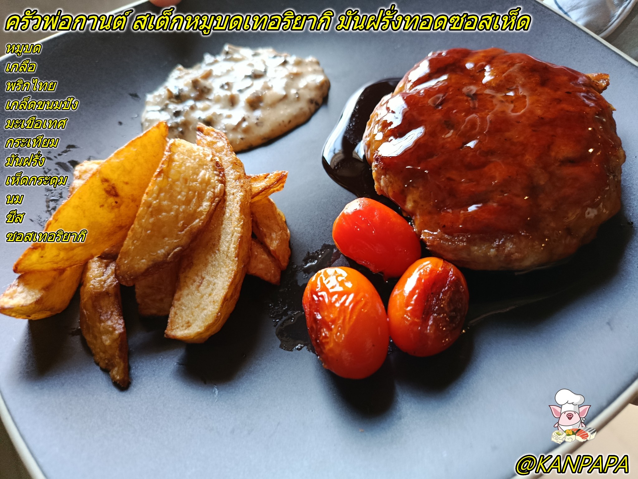 ครัวพ่อกานต์ สเต็กหมูบดเทอริยากิ มันฝรั่งทอดซอสเห็ด