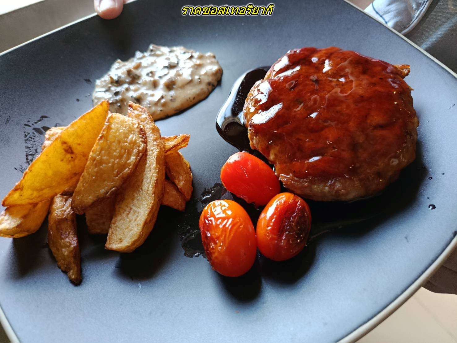 เมนูวันนี้ สเต็กหมูบดเทอริยากิ มันฝรั่งทอดซอสเห็ด