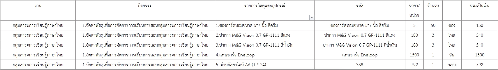 คือ อยากจะนับรายการวัสดุอุปกรณ์ เพราะจำนวน 400 รายการและมีรายการซ้ำว่าจำนวนทั้งหมดเท่าไหร่ และอยากจะให้สรุปจำนวนของนั้นๆด้วยว่าเท่าไหร่เช่น ซองการ์ดหอม ใช้สูตรแล้ว มีจำนวนทั้งหมด 5 รายการในตาราง และจำนวนรวมทั้งหมด 100 ซอง