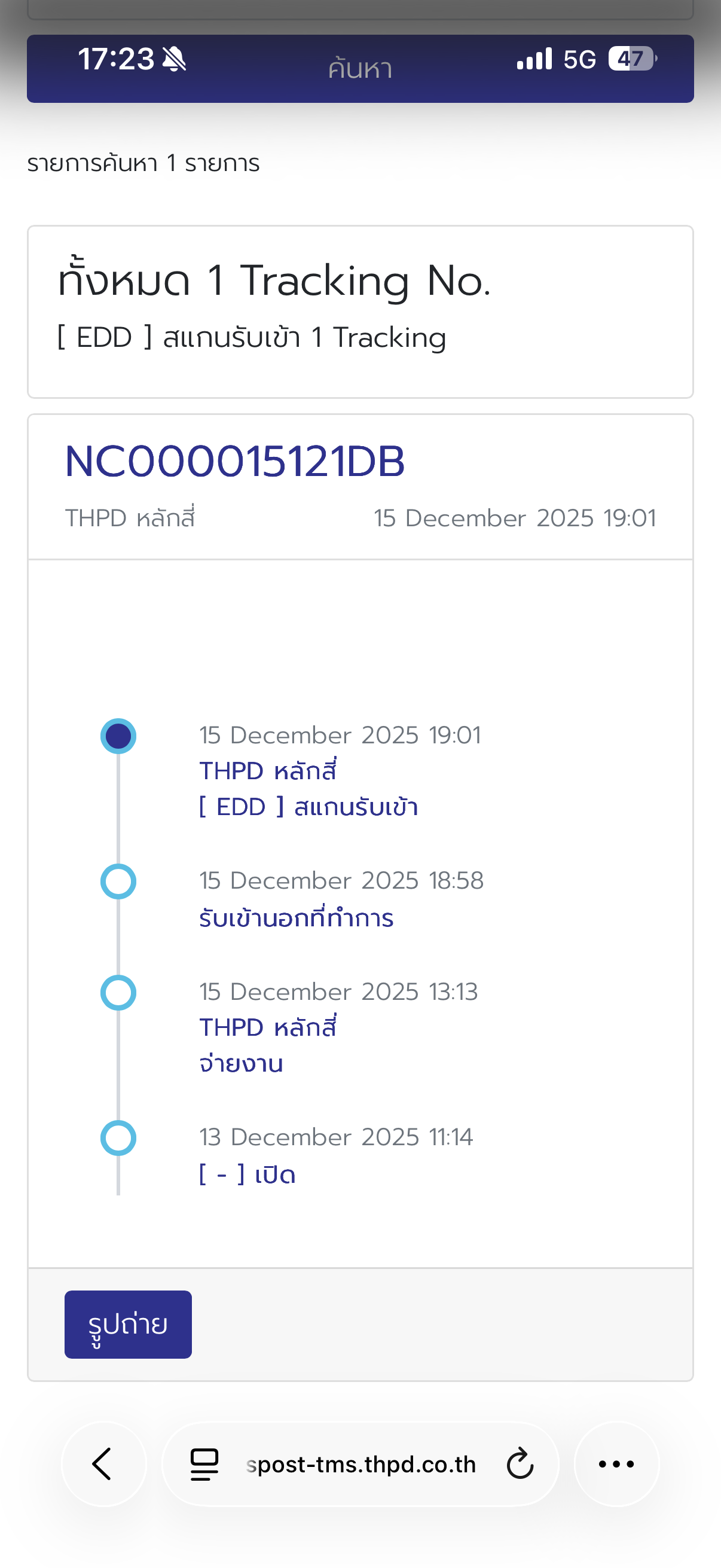 15/12/68 สแกนเข้ารับอยู่หลักสี่ แล้วก็ไม่อัพเดตเลยค่ะ