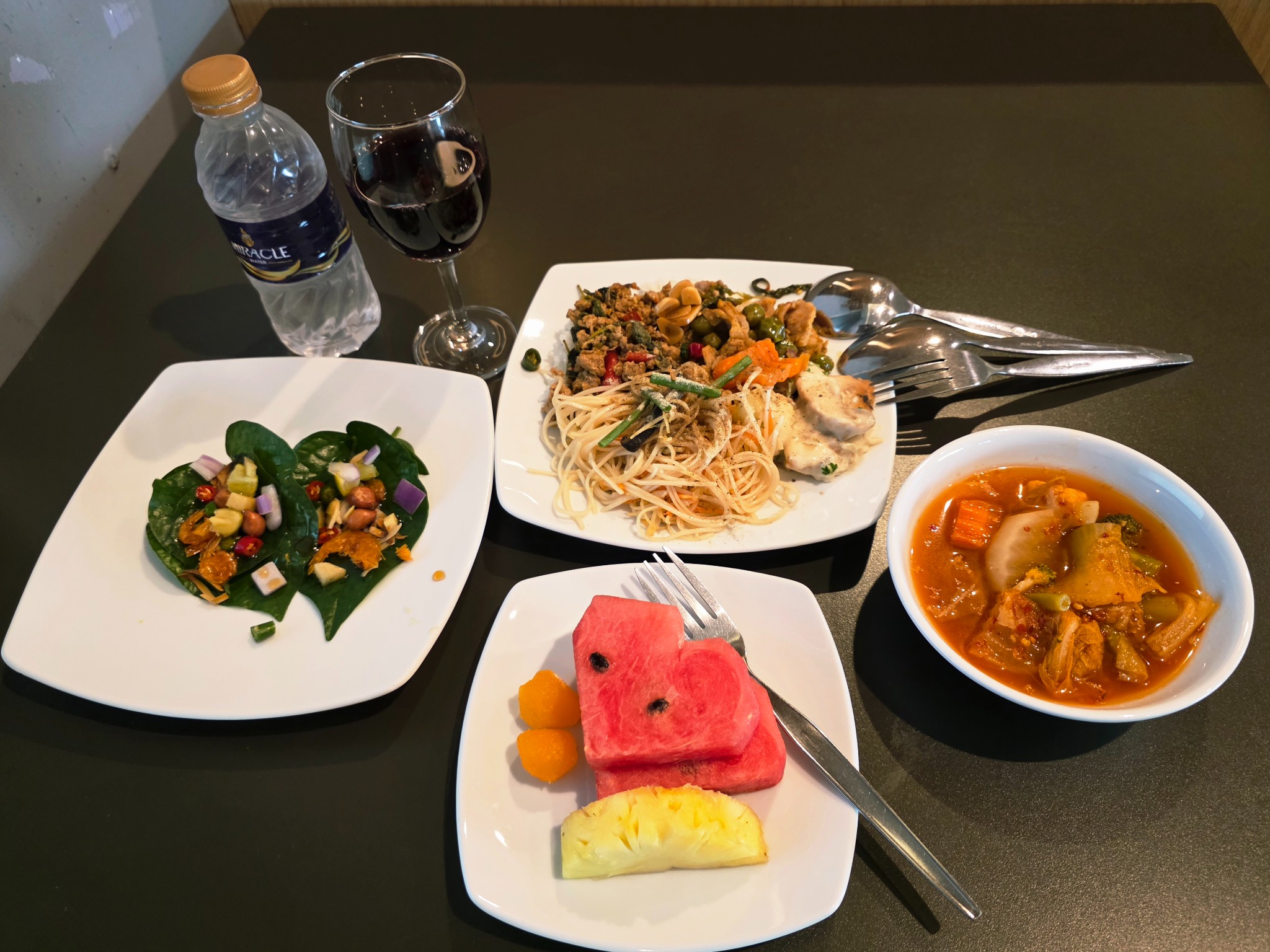 ผมก็เคยมาแวะใช้นานแล้ว โดยรวมทำได้ดี มีแอลกอฮอล์ด้วย ดีกว่า การบินไทย อาหารก็ดี ไม่อยากบรรยายส่วนที่เป็นเลานจ์ เพราะน่าจะมีคนพูดถึงเยอะแล้ว
