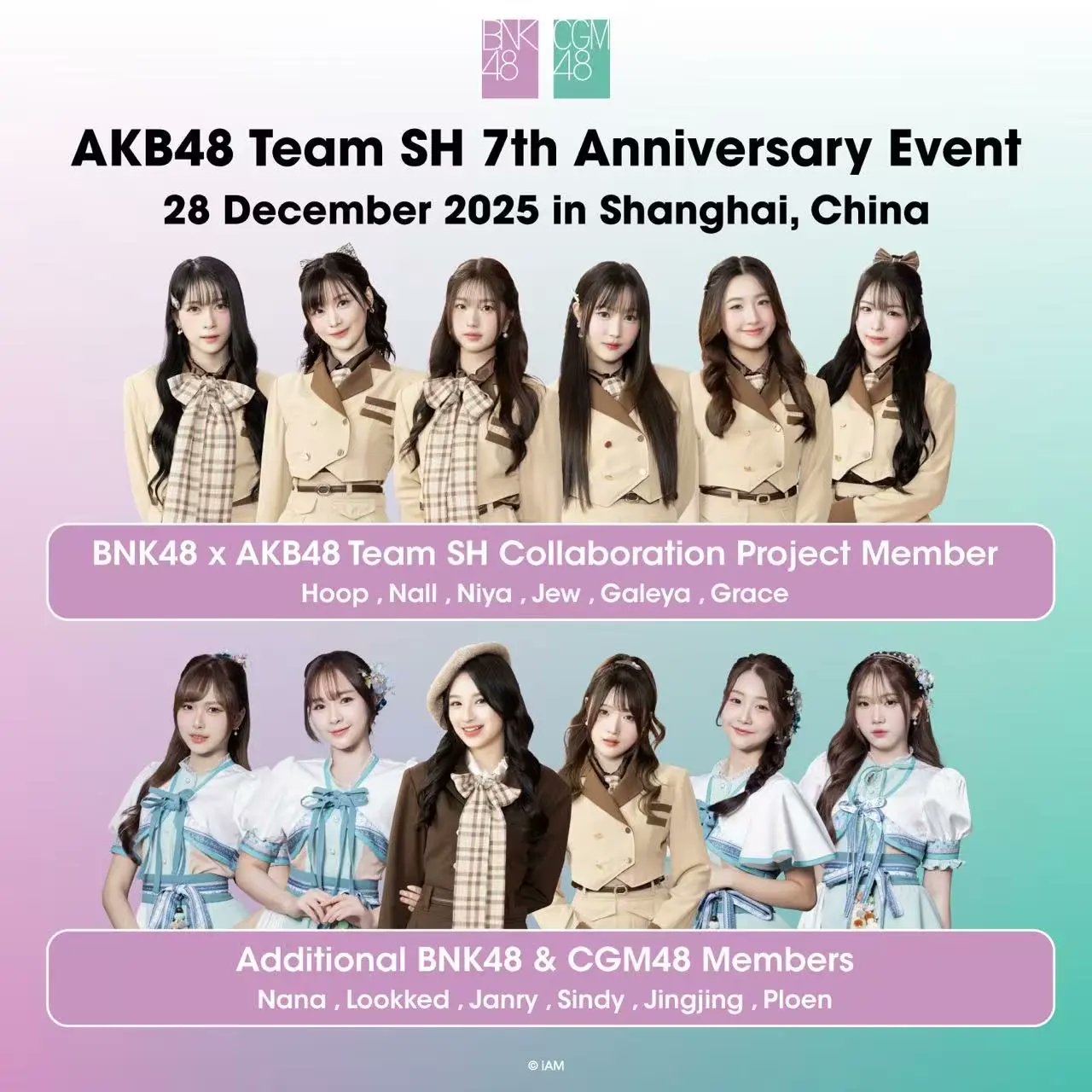 ประกาศรายชื่อเมมเบอร์จากแต่ละวง BNK48 & CGM48 ที่จะเข้าร่วมงานฉลองครบรอบ 7 ปี AKB48 Team SH ที่ประเทศจีน
