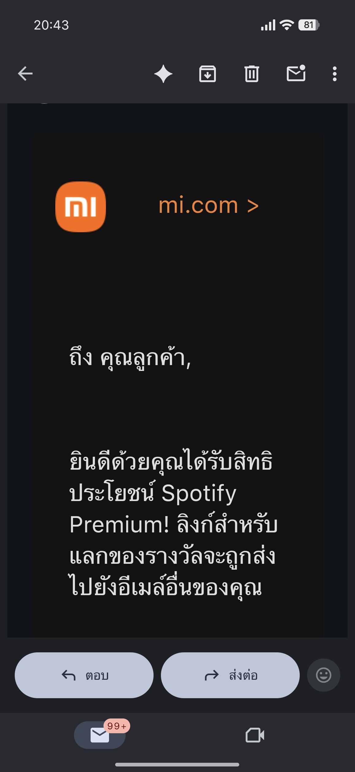 ต้องรับจากเมล์ไหนครับเเ ไม่มีข้อความสักเมล์?? ผมพึ่งซื้อ pocoF8pro มา