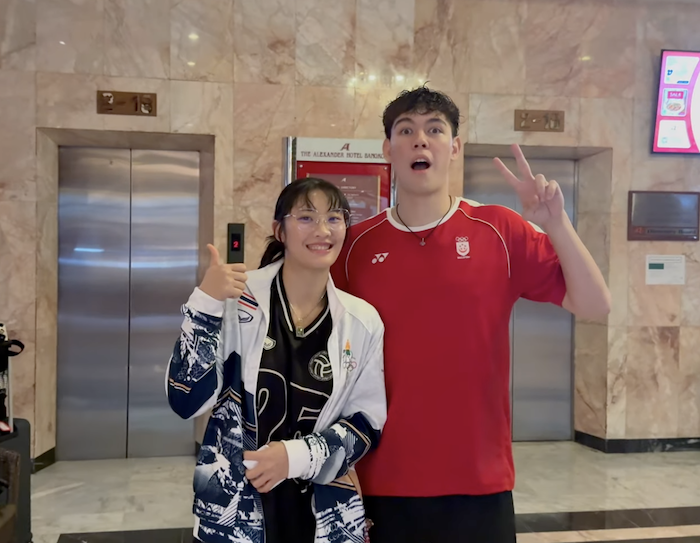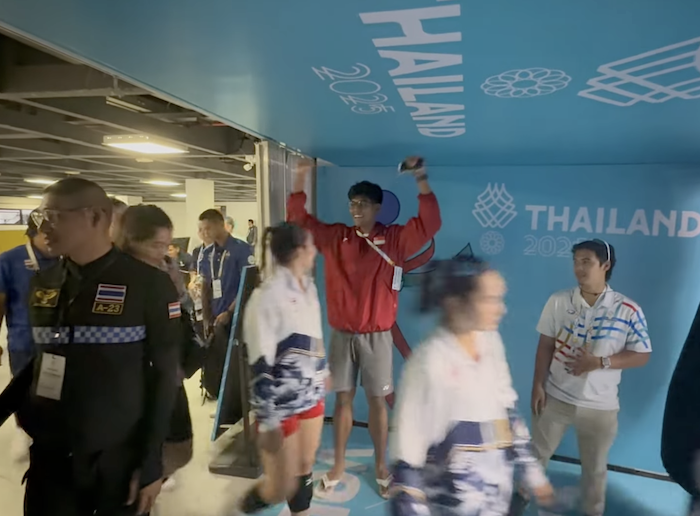 Aniqยืนส่งสาวไตลานเดินเข้าสนามนัดชิงกับสาวเฝอ