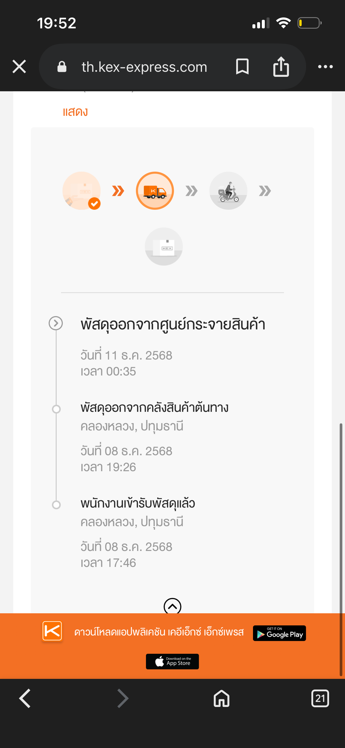 Kerry Express (KEX Express) คลังสมุทรสาคร พัสดุค้างหลายวัน จัดส่งล่าช้า แต่ลูกค้าไม่มีสิทธิ์รู้ความคืบหน้า
