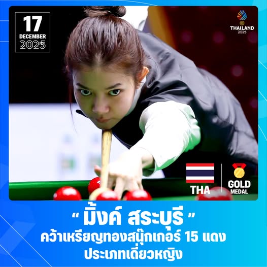 🥇 เหรียญทอง สนุกเกอร์ 15 แดง ประเภทบุคคลหญิง