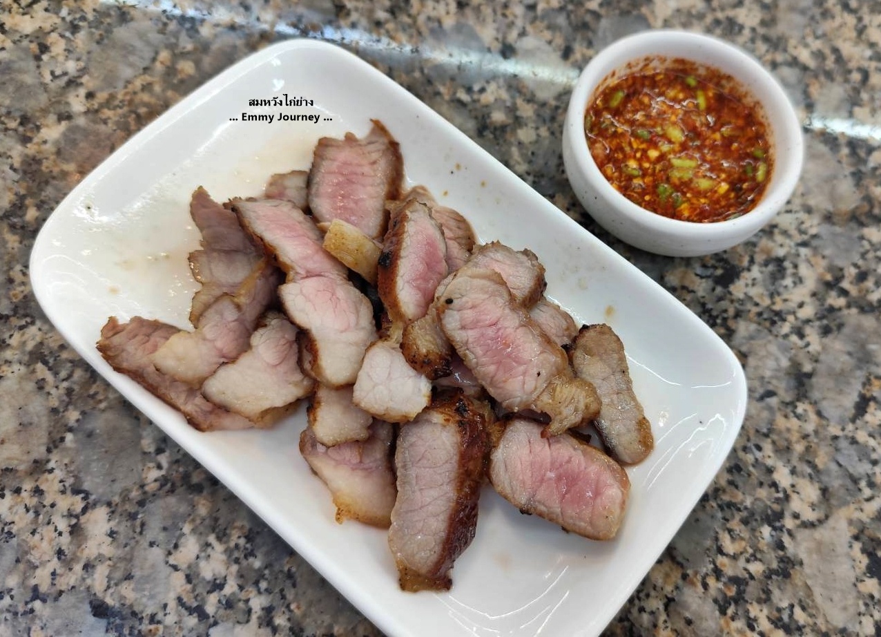 เนื้อย่าง 120 บาท เนื้อไม่เหนียวมาก น้ำจิ้มแจ่วรสชาติออกเค็มๆ เผ็ดๆ
