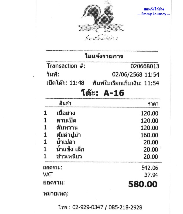 ทานกัน 2 คน จ่ายไป 580 บาท (ราคาอาหาร ณ เดือนมิถุนายน 2568)
