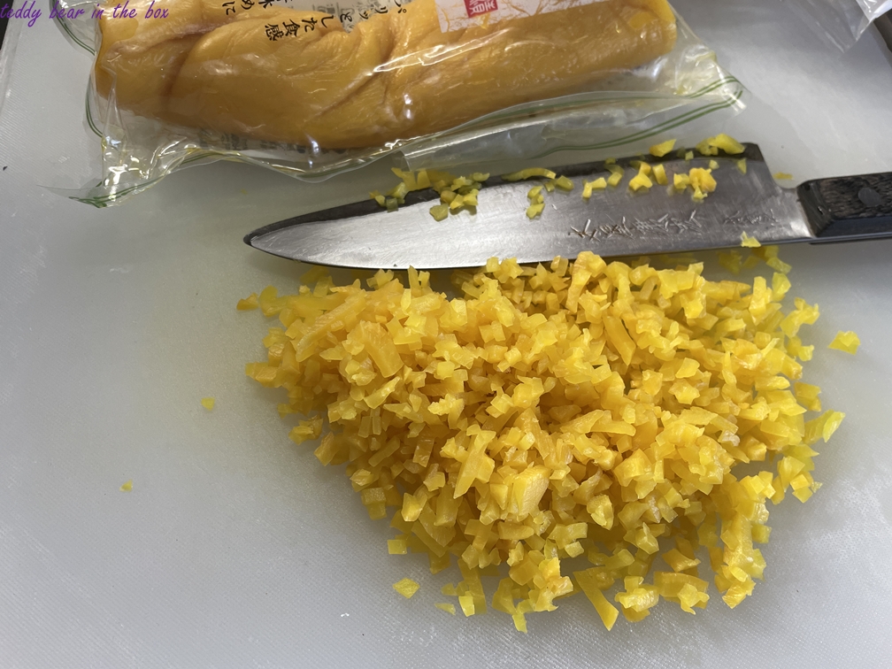 ** หัวไช้โป๊วเราไม่มี เลยใช้หัวไชเท้าดองหวานเค็มของญี่ปุ่น มาสับแทน
