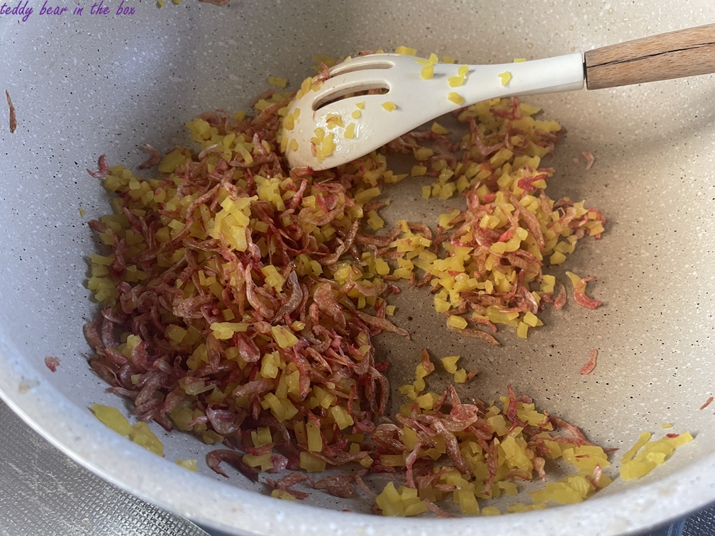 ผัดหัวไชเท้ากับกุ้งแห้งให้หอม ตักพักไว้