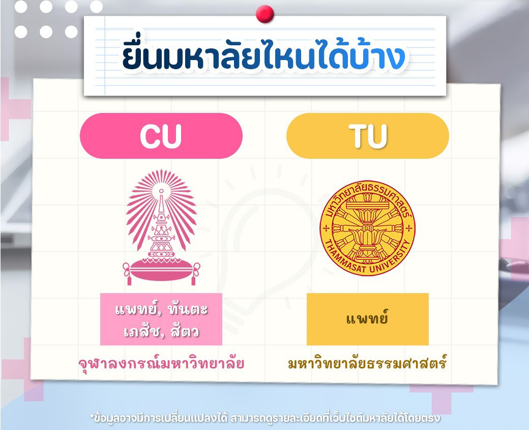 CU (Chulalongkorn University): แพทย์, ทันตแพทย์, เภสัช, สัตวแพทย์
