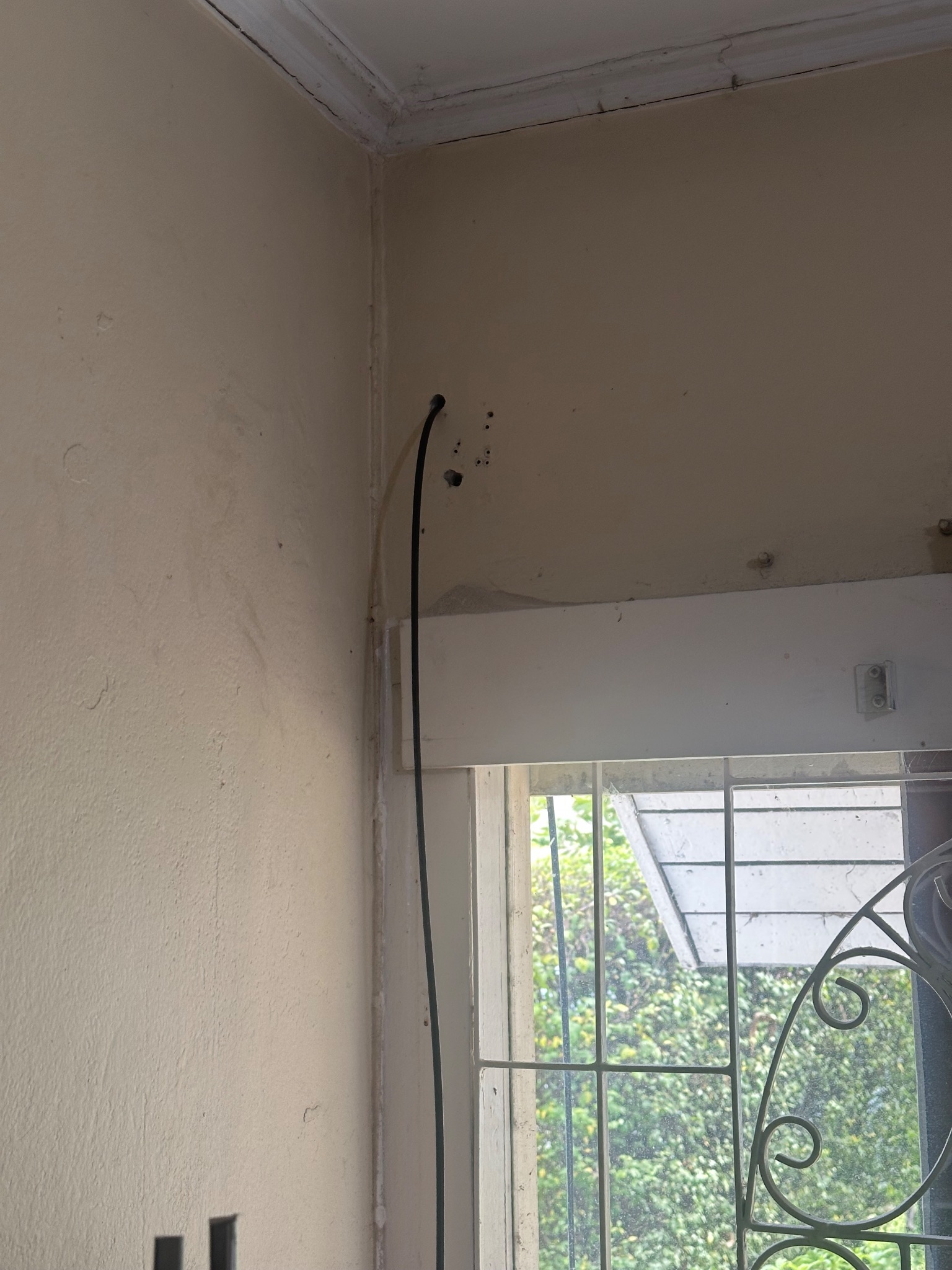 ช่างแอร์ เจาะผนังเอาเหล็กเส้นออกมาด้วยเส้นนึงครับ บ้านจะพังมั้ย