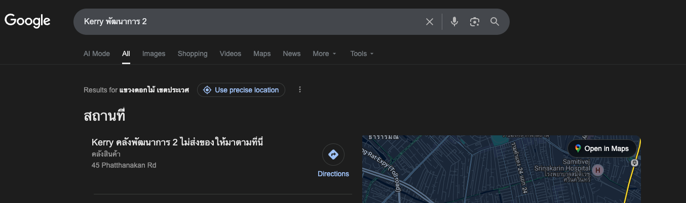 จนเราเอาชื่อสาขา Kerry ที่จะทำการจัดส่งให้ ไปเซิทและสิ่งที่เจอคือมีคนสร้างไว้ใน Google Map