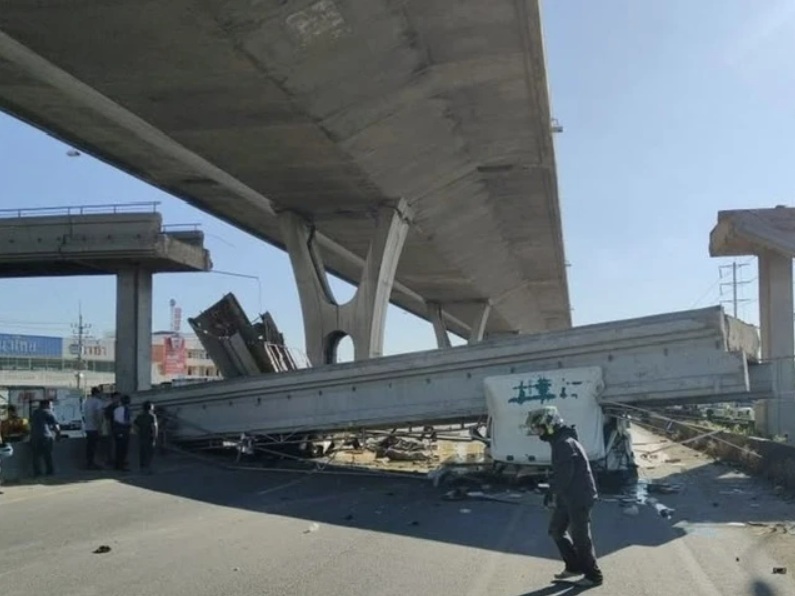 ด่วน สะพานลอยคนข้าม ถล่มทับรถบรรทุก-รถกระบะ บนถนนเทพรัตน สมุทรปราการ มีคนบาดเจ็บติดภายในรถ เจ้าหน้าที่เร่งลงพื้นที่ตรวจสอบ เมื่อเวลา 09.25 น. วันที่ 18 ธ.ค.2568 ผู้สื่อข่าวรายงานว่า เกิดเหตุ สะพานลอย