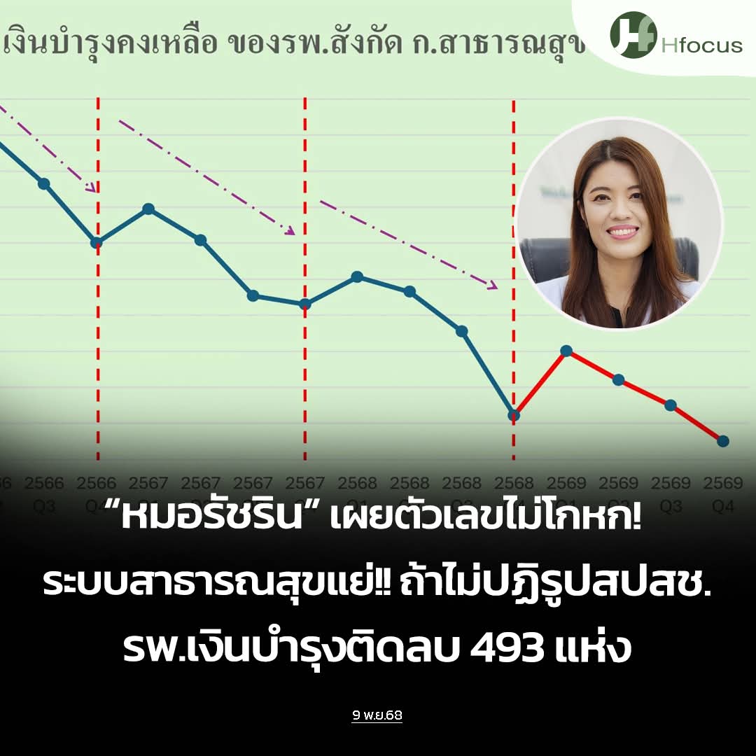 “หมอรัชริน” เผยตัวเลขไม่โกหก! ระบบสาธารณสุขกำลังแย่!! รพ.เงินบำรุงติดลบ 493 แห่ง