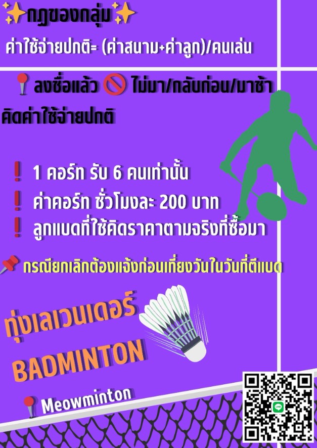 - ค่าคอร์ทกับค่าลูกแบดหารเท่ากันทุกคนครับ