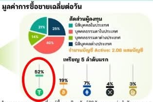 เผื่อแบงก์ชาติไม่รู้ แต่กลต.เขารู้ ทำไมบาทแข็งผิดปกติ-มีการซื้อขายเหรียญคริปโตผ่านกระดานซื้อขายในประเทศไทยเฉลี่ยเดือนละ1แสนล้านบาท แต่ที่วงการงงและงึดใจก็คือ ทำไม? แทนที่จะมีการซื้อขายในเหรียญที่มันแกว่งแรงผันผวน เพื่อเก็งกำไรอย่างBITCOINมาเป็นอันดับ1 แต่ปรากฎว่าติดแค่อันดับ2 ไม่ถึง20%ของการซื้อขายต่อวัน