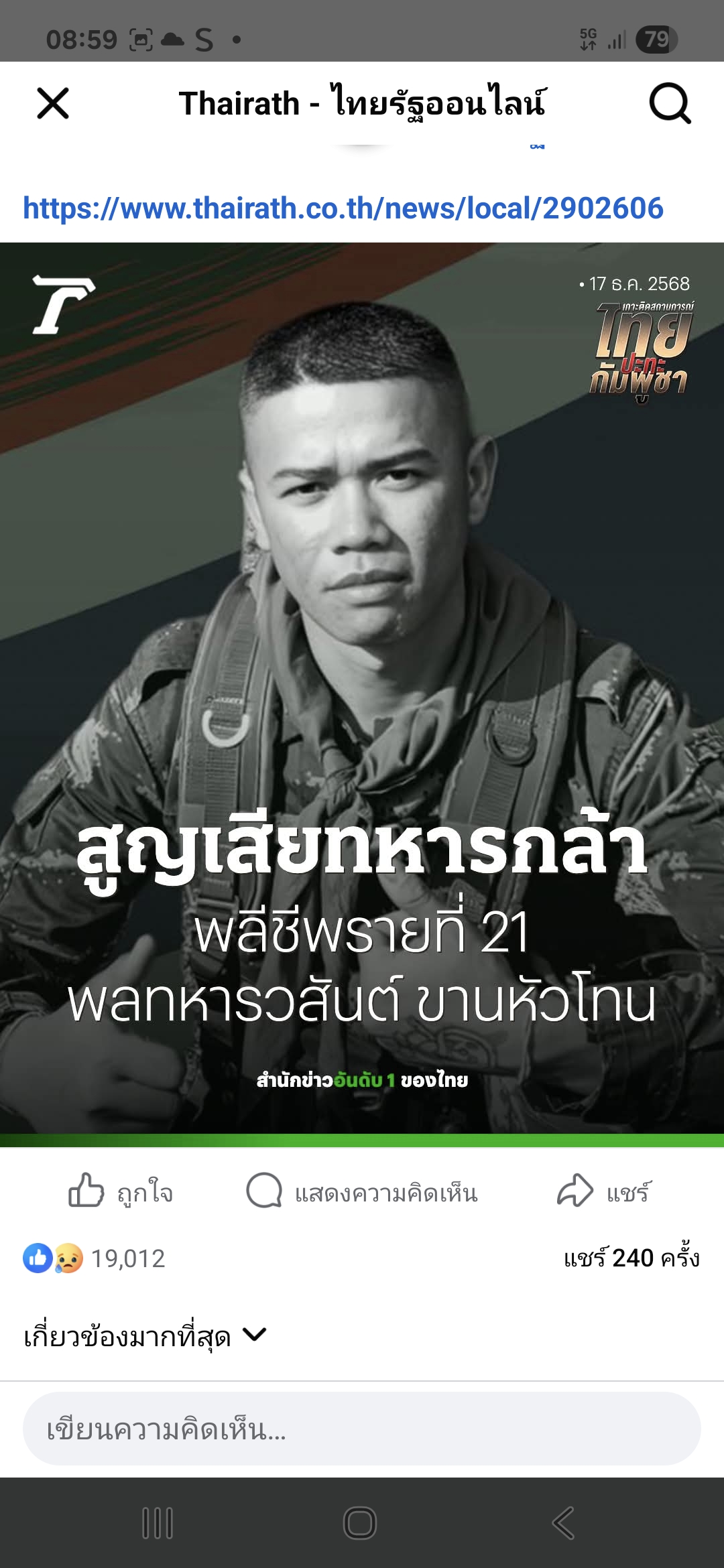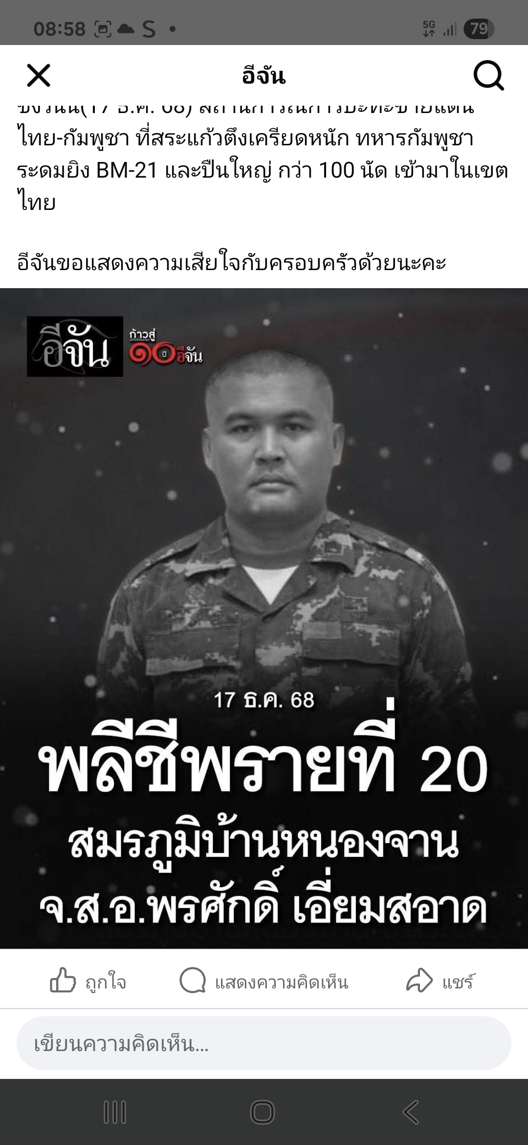 🖤🤍 สดุดีทหารกล้า 18. จ.ส.อ.สำเริง คลังประโคน สังกัด กองพันทหารราบที่ 3 กรมทหารราบที่ 23 เสียชีวิตในสมรภูมิเนิน 350 ปราสาทตาควาย เมื่อวันที่ 16 ธันวาคม 2568 19. พลทหาร ภานุพัฒน์ เสาร์สาสัง