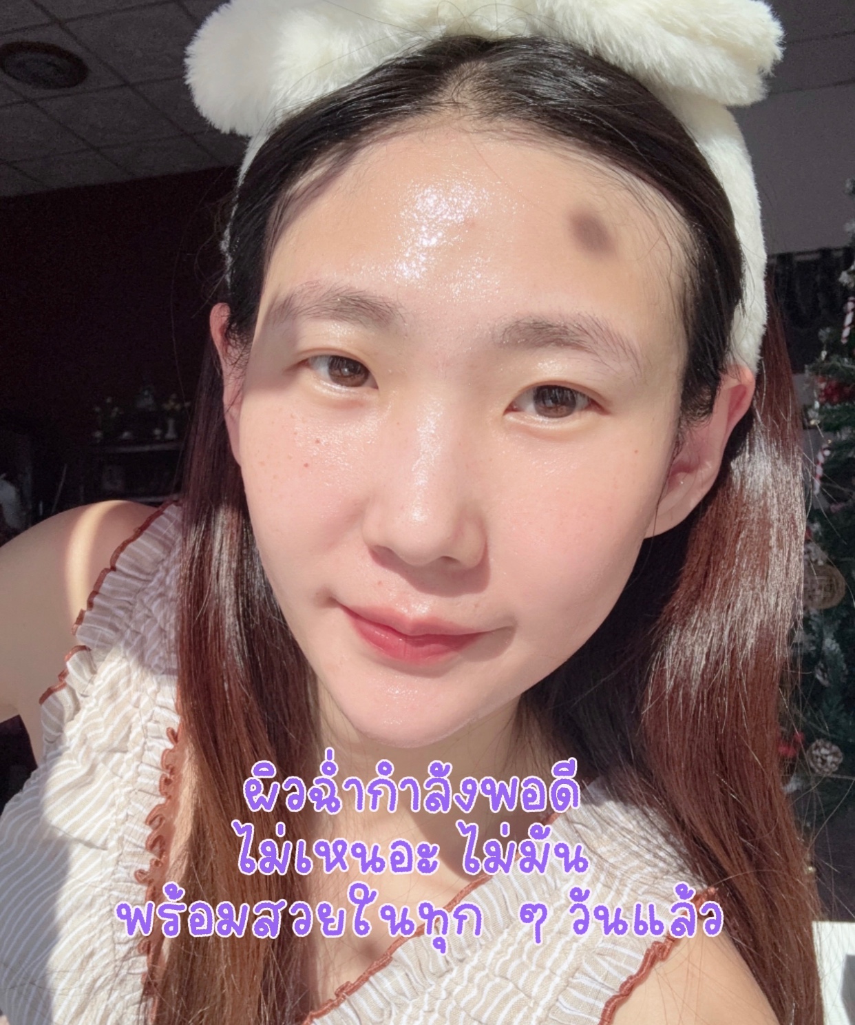 พอแกะออกคือ ผิวฉ่ำแบบกำลังดี ไม่เหนอะ ไม่มัน เหมือนผิวได้โดนบูสต์ให้พร้อมรับเมกอัพมากขึ้น แต่งหน้าต่อแล้วเครื่องสำอางดูนัวขึ้นจริง และที่ชอบที่สุดคือ กลับมาบ้านยังรู้สึกว่าผิวยังดูฟู ๆ ฉ่ำ ๆ อยู่ ไม่ดรอประหว่างวัน แล้วส่วนผสมทางแบรนด์มาจุกมาก
