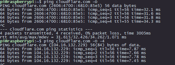 cloudflare IPv6 ping สูงกว่า IPv4 เกือบ 5 เท่า (32 ms > 7 ms)