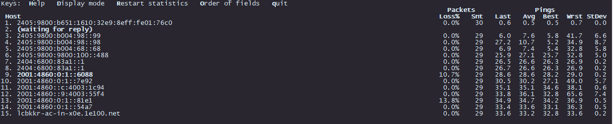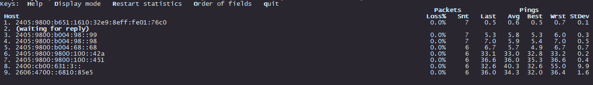 สงสัยว่า IPv6 ของ AIS ดูไม่ค่อยเสถียรเท่าไหร่เลยครับ ช่วงก่อนก็มีปัญหา loss กับ cloudflare
