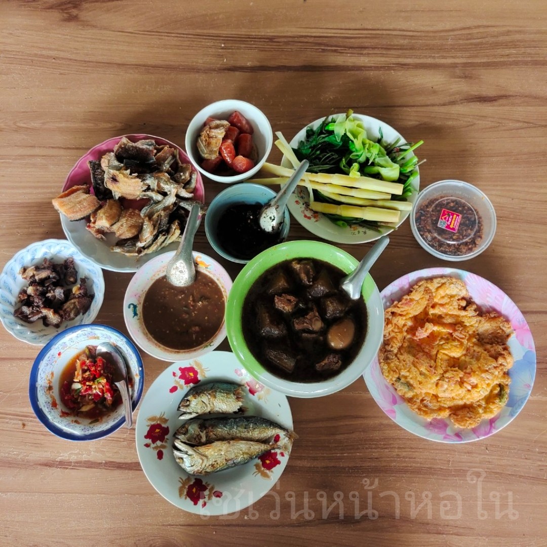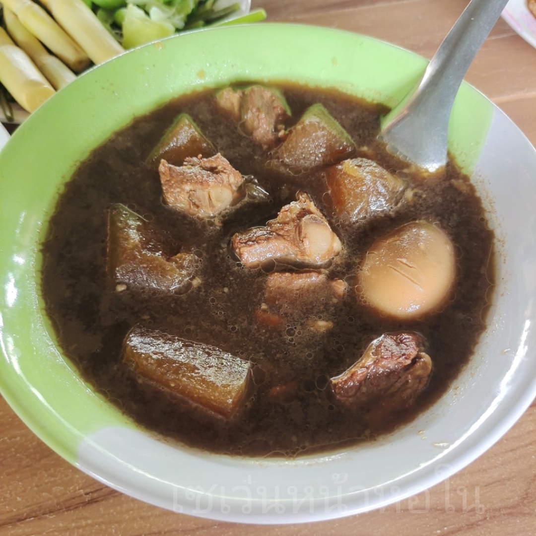 เย็นนั้นเลยได้กินเมนูอร่อยของไทยทรงดำ แกงฝอ กับ แกงโฮเฮ