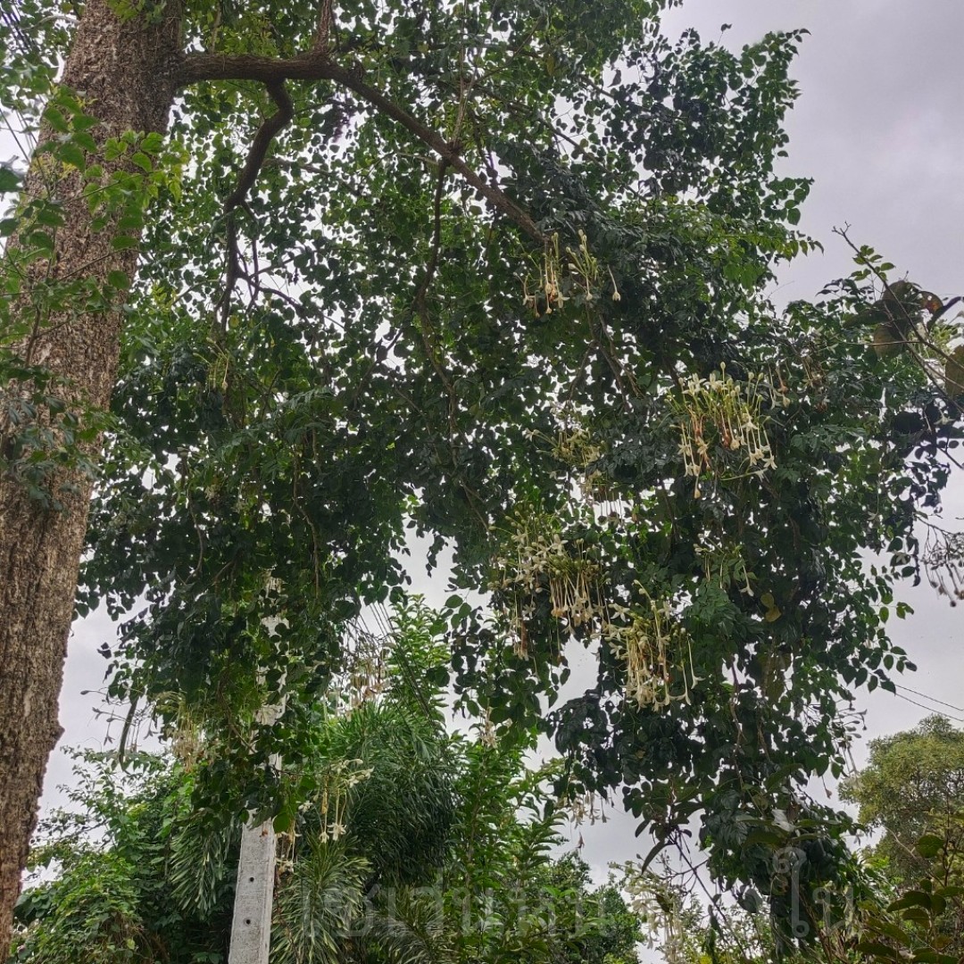 ตื่นแต่เช้าเดินไปดูต้นดอกปีบ หน้าบ้านไม้ของคุณย่า