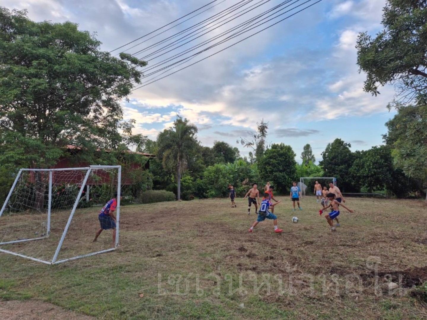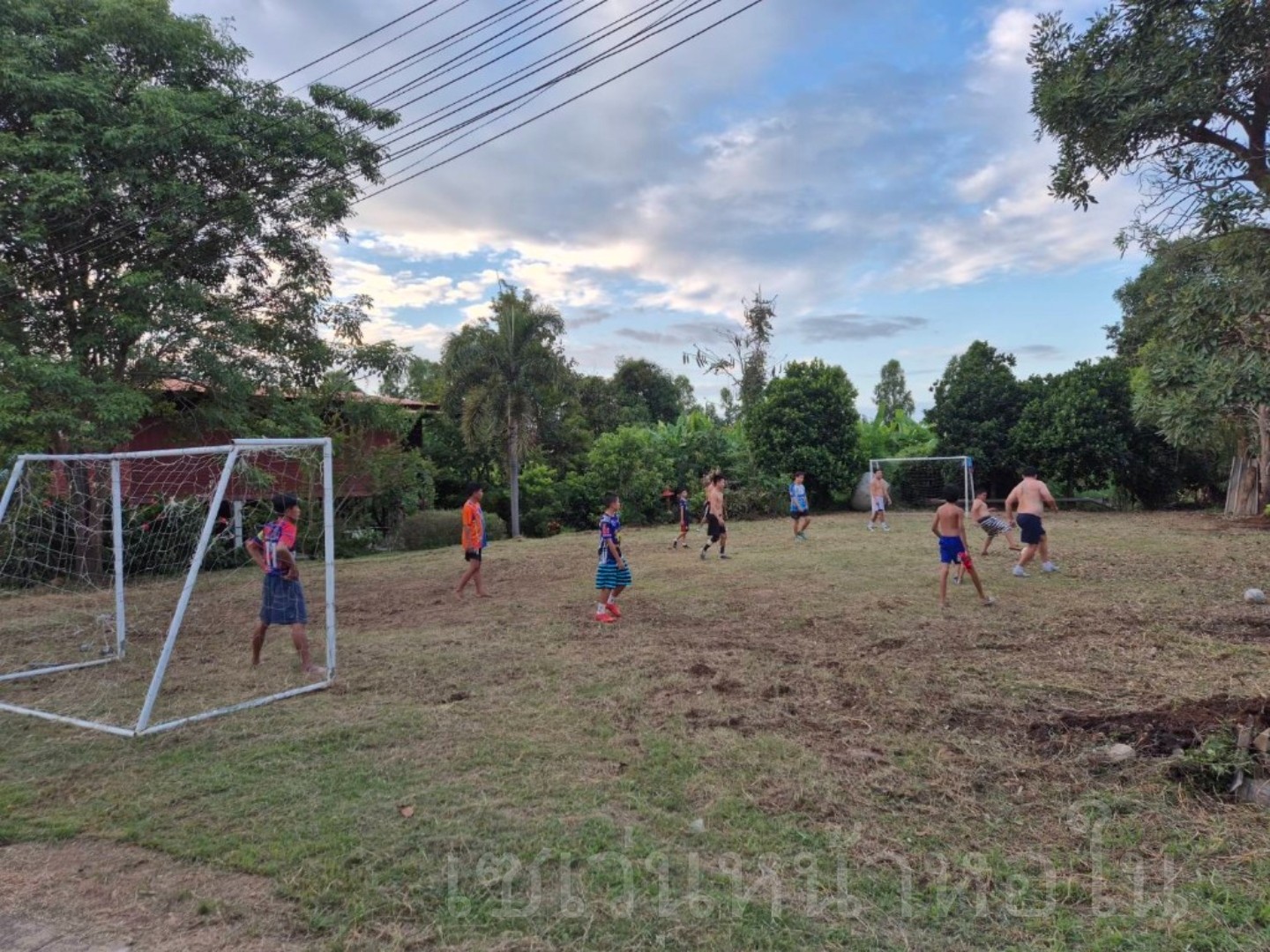ลานกว้างระหว่างบ้านคุณย่ากับคุณอา ดัดแปลงทำเป็นสนามฟุตบอลให้เด็กๆแถวนั้นได้มาเล่น มาออกกำลังกายกันครับ