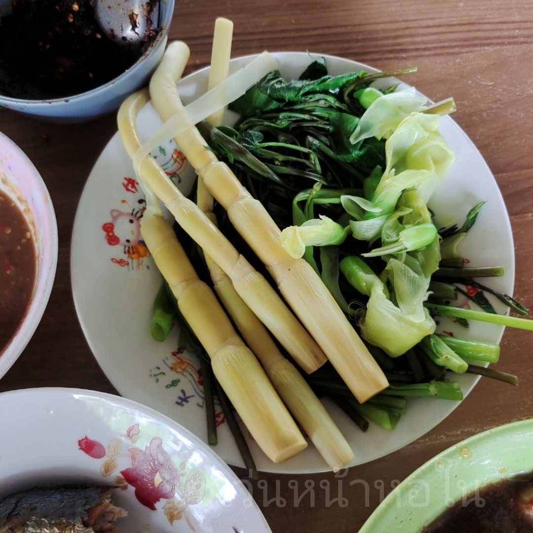 ผักต้ม ผักลวก เก็บเอาแถวๆบ้านเลยครับ
