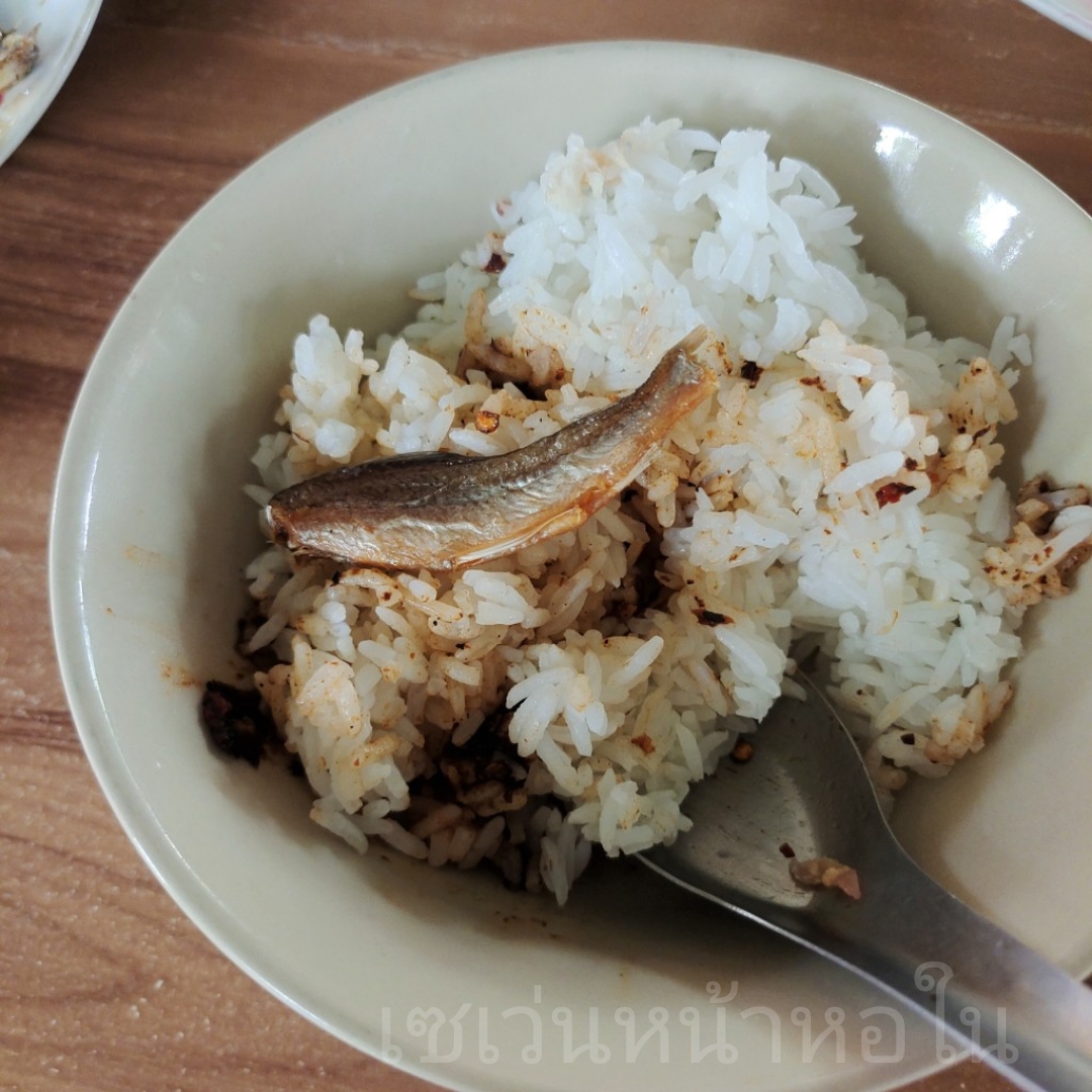 ข้าวคลุกแจ่วด้านหรือแจ่วร่านของไทยทรงดำ ก็อร่อย กินกับปลาเกลือทอด หอมกลิ่นมะแข่น